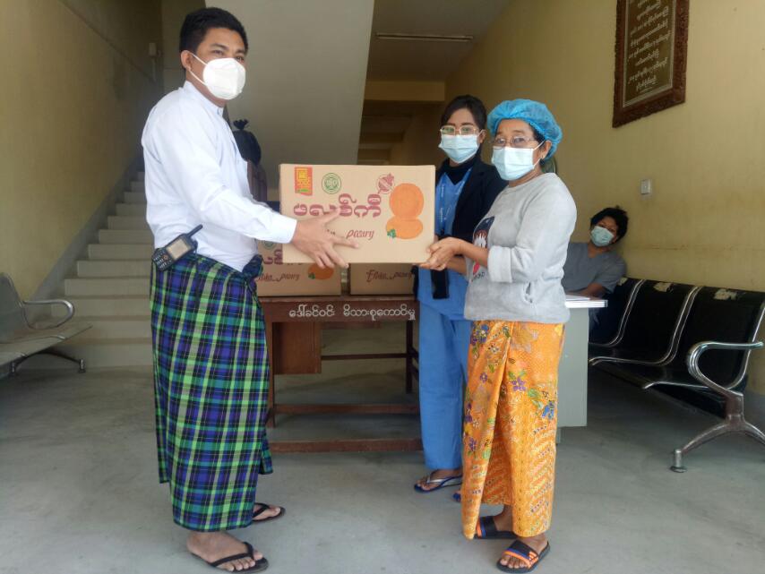 မန္တလေးတိုင်းဒေသကြီး အစိုးရအဖွဲ့မှ အောင်မြေသာစံမြို့နယ်ရှိ ကိုဗစ် − ၁၉ ရောဂါပိုးတွေ့ အတည်ပြုလူနာများထားရှိသော စင်တာ(၄)နေရာသို့ ဘီစကစ်ဖာများ ပေးပို့လှူဒါန်းရာ မန္တလေးတိုင်းဒေသကြီး အစိုးရအဖွဲ့ကိုယ်စား အောင်မြေသာစံမြို့နယ် အထွေထွေအုပ်ချုပ်ရေး ဦးစီးဌာနမှ တာဝန်ရှိသူများက ယမန်နေ့နံနက်ပိုင်းက အဆိုပါစင်တာရှိရာ နေရာများသို့ သွားရောက်ပေးအပ်ခဲ့ကြောင်း သိရသည်။