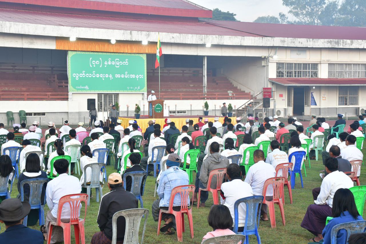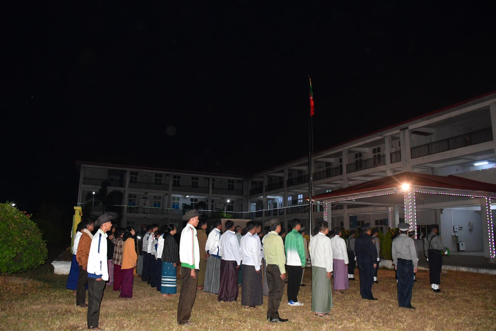 ရှေးဦးစွာ မြို့နယ်အသီးသီးရှိ အလံတင်အခမ်းအနား ကျင်းပရာနေရာများ၌ နံနက် ၄ နာရီ ၂၀ မိနစ်တွင် ကျင်းပရာ နိုင်ငံတော်အလံအား ရဲတပ်ဖွဲ့ဝင်များက အလံတိုင်ထိပ်သို့လွှင့်တင်ခဲ့ကြပြီး နိုင်ငံတော်အလံအား ခရိုင်/မြို့နယ်စီမံခန့်ခွဲရေးနှင့်အုပ်ချုပ်ရေးကော်မတီဥက္ကဋ္ဌများနှင့်အဖွဲ့ဝင်များ၊ ရဲတပ်ဖွဲ့ဝင်များ၊ ဌာနဆိုင်ရာအကြီးအကဲများနှင့်ဝန်ထမ်းများ၊ မီးသတ်နှင့်ကြက်ခြေနီသူနာပြုတပ်ဖွဲ့ဝင်များ၊ အသင်းအဖွဲ့များမှပုဂ္ဂိုလ်များက စုပေါင်းအလေးပြုကြသည်။