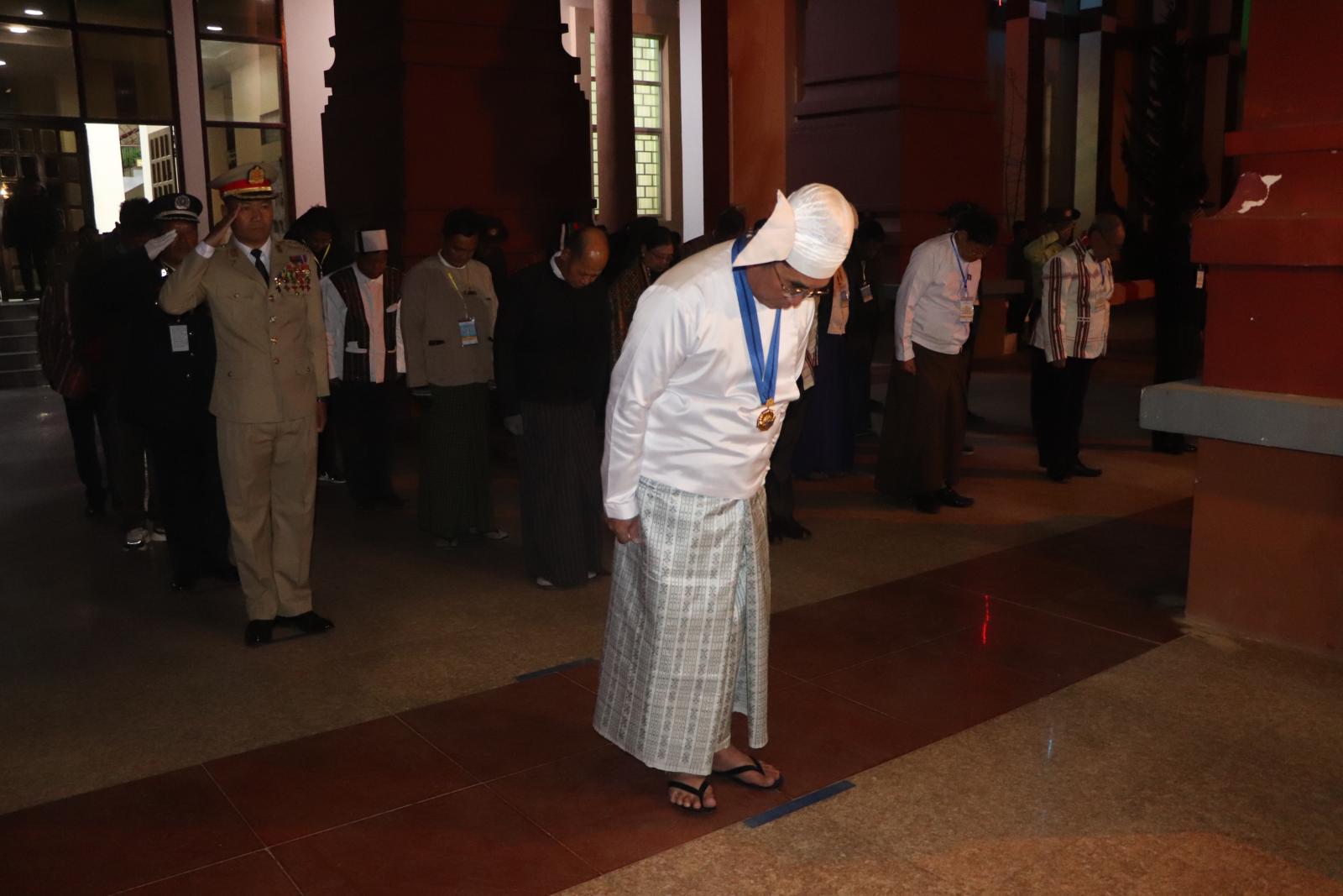 ဆက်လက်၍ နံနက် ၇ နာရီတွင် လွတ်လပ်ရေးနေ့သဝဏ်လွှာဖတ်ကြားခြင်းအခမ်းအနားကို ချင်းပြည်နယ်အစိုးရအဖွဲ့ရုံးရှိ ချင်းပြည်နယ်အထွေထွေအုပ်ချုပ်ရေးဦးစီးဌာန၊ အစည်းအဝေးခန်းမ၌ ကျင်းပရာ မြန်မာနိုင်ငံရဲတပ်ဖွဲ့ဦးဆောင်မှုဖြင့် နိုင်ငံတော်အလံအလေးပြုကြပြီး ပြည်ထောင်စုသမ္မတ မြန်မာနိုင်ငံတော်ယာယီသမ္မတ နိုင်ငံတော်လုံခြုံရေးနှင့်အေးချမ်းသာယာရေးကော်မရှင်ဥက္ကဋ္ဌ၊ ဗိုလ်ချုပ်မှူးကြီး သတိုးမဟာသရေစည်သူ သတိုးသီရိသုဓမ္မ မင်းအောင်လှိုင်ထံမှ (၇၈) နှစ်မြောက် လွတ်လပ်ရေးနေ့အခမ်းအနားသို့ ပေးပို့သည့်သဝဏ်လွှာအား ချင်းပြည်နယ်ဝန်ကြီးချုပ် သီရိပျံချီ ဒေါက်တာဝုန်ဆွန်းထန်က ဖတ်ကြားသည်။