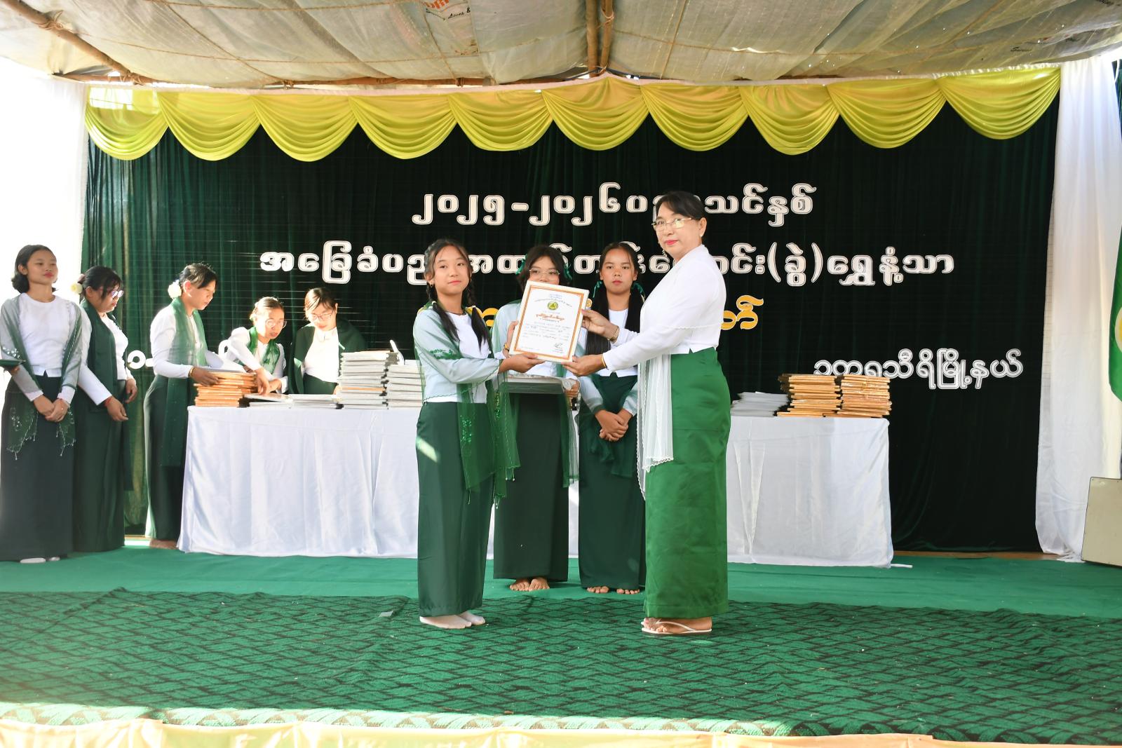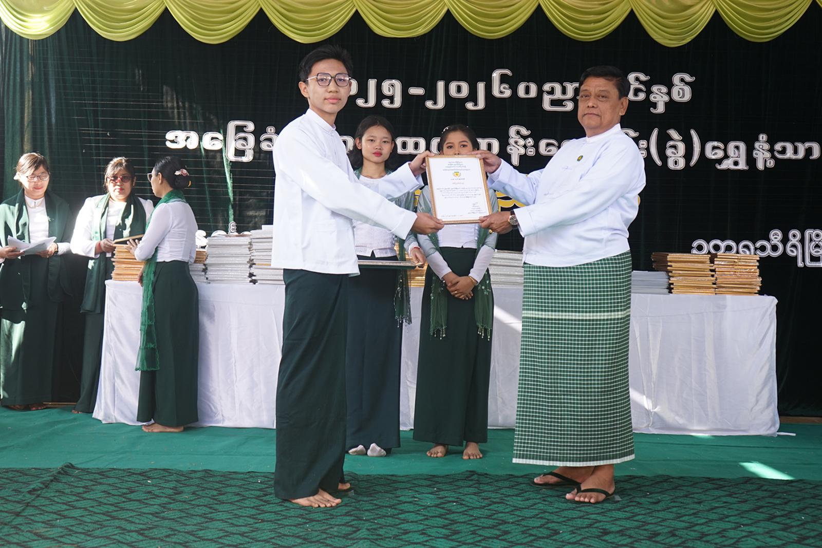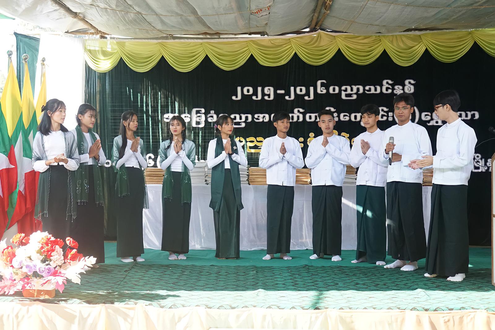 ထို့နောက် မြို့နယ်စီမံခန့်ခွဲရေးနှင့်အုပ်ချုပ်ရေးကော်မတီဥက္ကဋ္ဌ ဦးရဲမြတ်သိန်းက အဖွင့်အမှာစကားပြောကြားခဲ့သည်။ ယင်းနောက် နေပြည်တော်ပညာရေးမှူးရုံး ညွှန်ကြားရေးမှူး ဒေါက်တာကျော်လွင်၊ မြို့နယ်စီမံခန့်ခွဲရေးနှင့်အုပ်ချုပ်ရေးကော်မတီဥက္ကဋ္ဌနှင့် တာဝန်ရှိသူများက ၂၀၂၅-၂၀၂၆ ပညာသင်နှစ်တွင် မြို့နယ်အဆင့်ဆုရရှိသည့် ကျောင်းသား၊ ကျောင်းသူများ၊ ၂၀၂၅-၂၀၂၆ ပညာသင်နှစ် တိုင်း၊ ခရိုင်၊ မြို့နယ်၊ ကျောင်းအဆင့် ထူးချွန်ဆုရရှိသူများနှင့် လူရည်ချွန်ဆုရကျောင်းသား၊ ကျောင်းသူများ၊ အားကစားပြိုင်ပွဲများတွင် ဆုရရှိသည့် ကျောင်းသား၊ ကျောင်းသူများ၊ ရပ်မိရပ်ဖအလှူရှင်များ၊ ကျောင်းသား၊ ကျောင်းသူများအား ဆုရရှိအောင် သင်ကြားပြသပေးသည့် ဆရာ၊ ဆရာမများအား ဂုဏ်ပြုမှတ်တမ်းလွှာများအသီးသီး ချီးမြှင့်ခဲ့ကြသည်။