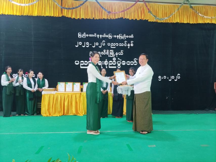 ဆက်လက်၍ နေပြည်တော်ကောင်စီဝင် ဦးဇေယျာလင်း၊ မြို့နယ်စီမံခန့်ခွဲရေးနှင့်အုပ်ချုပ်ရေးကော်မတီဥက္ကဋ္ဌ ဦးရဲမြတ်သိန်းနှင့် အဖွဲ့ဝင်များ၊ ဒုတိယမြို့နယ်ပညာရေးမှူးများ၊ အခြေခံပညာကျောင်းများမှ ကျောင်းအုပ်ဆရာကြီး၊ ဆရာမကြီးများနှင့် တာဝန်ရှိသူများက ကျောင်းသန့်ရှင်းရေးအကောင်းဆုံးဆုရ ကျောင်းအုပ်ဆရာကြီး၊ ဆရာမကြီးများ၊ တိုင်း၊ ခရိုင်၊ မြို့နယ်အဆင့် များတွင် အားကစားထူးချွန်ဆုရရှိသူများ၊ အထိမ်းအမှတ်နေ့ ပြိုင်ပွဲများ၊ ကျောင်းသားအားကစား ပြိုင်ပွဲများနှင့် အတန်းအလိုက် ဘာသာရပ်ထူးချွန်ဆုရရှိသူ ဆရာ၊ ဆရာမများနှင့် ကျောင်းသား၊ ကျောင်းသူများအား ဂုဏ်ပြုမှတ်တမ်းနှင့် ဂုဏ်ပြုဆုငွေများ အသီးသီး ပေးအပ်ချီးမြှင့်ခဲ့ကြသည်။