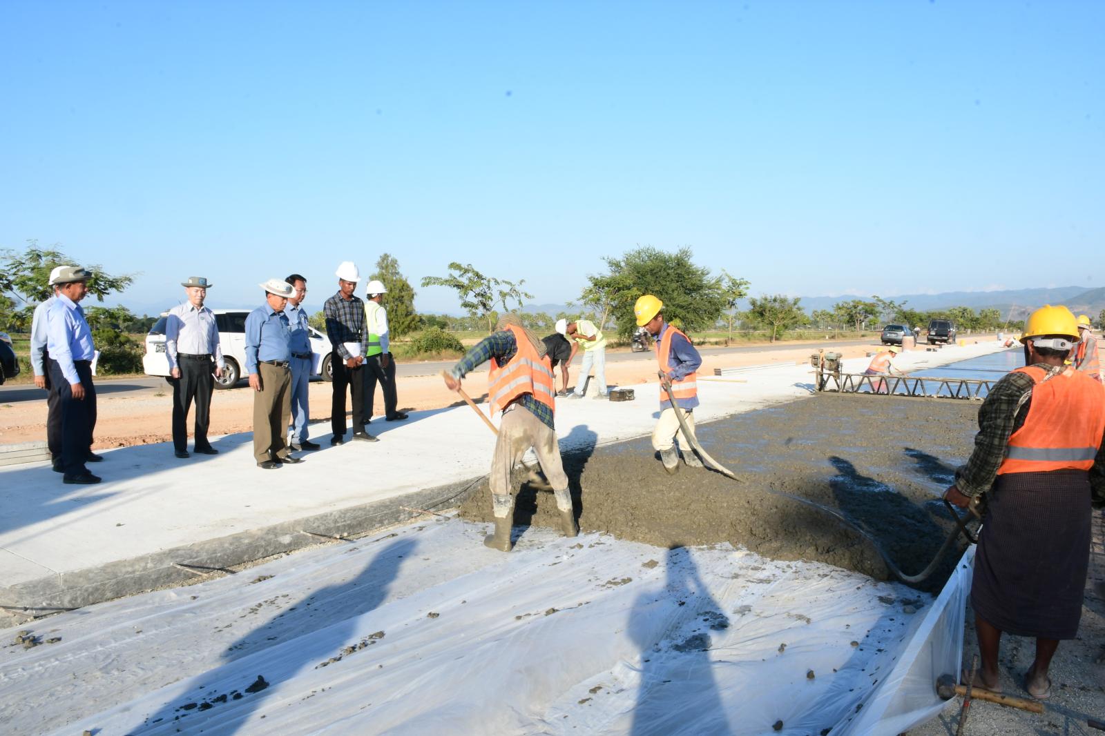 ဆက်လက်၍ နေပြည်တော်ကောင်စီဥက္ကဋ္ဌနှင့်အဖွဲ့သည် လယ်ဝေးမြို့နယ်၊ ရွှေပြည်တော်ဝင်လမ်း H-1 လမ်း(ရန်ကုန်-မန္တလေးလမ်းဟောင်းမှ မြို့ရှောင်လမ်း)အထိ မူလ(၂၄-ပေ)အကျယ် (၂)လမ်းသွား ကွန်ကရစ်လမ်းမှ (၄၈-ပေ)အကျယ် (၄)လမ်းသွား ကွန်ကရစ်လမ်းတိုးချဲ့ဆောင်ရွက်ခြင်းနှင့် လမ်းလယ်ကျွန်းနှင့် အောက်ခံကျောက်ခင်းခြင်းလုပ်ငန်း ဆောင်ရွက်နေမှုများကို ကြည့်ရှုစစ်ဆေးပြီးတာဝန်ရှိသူများအား လုပ်ငန်းများအမြန်ပြီးစီးအောင် လူအင်အား၊ စက်ယန္တရားအင်အားတိုးမြှင့်ဆောင်ရွက်ရေး၊ လုပ်ငန်းသုံးကျောက်များအား သတ်မှတ်အရွယ်အစားလိုက် အရည်အသွေးပြည့်မီစွာအသုံးပြုရေး၊ ငလျင်ဘေးအပါအဝင် သဘာဝဘေးအန္တရာယ်ခံနိုင်ရည်ရှိအောင် သတ်မှတ်စံချိန်၊ စံညွှန်းများနှင့်အညီ ဆောင်ရွက်ရေးတို့ကို မှာကြားပြီး လုပ်ငန်းလိုအပ်ချက်များကို ပေါင်းစပ်ဆောင်ရွက်ပေးခဲ့သည်။