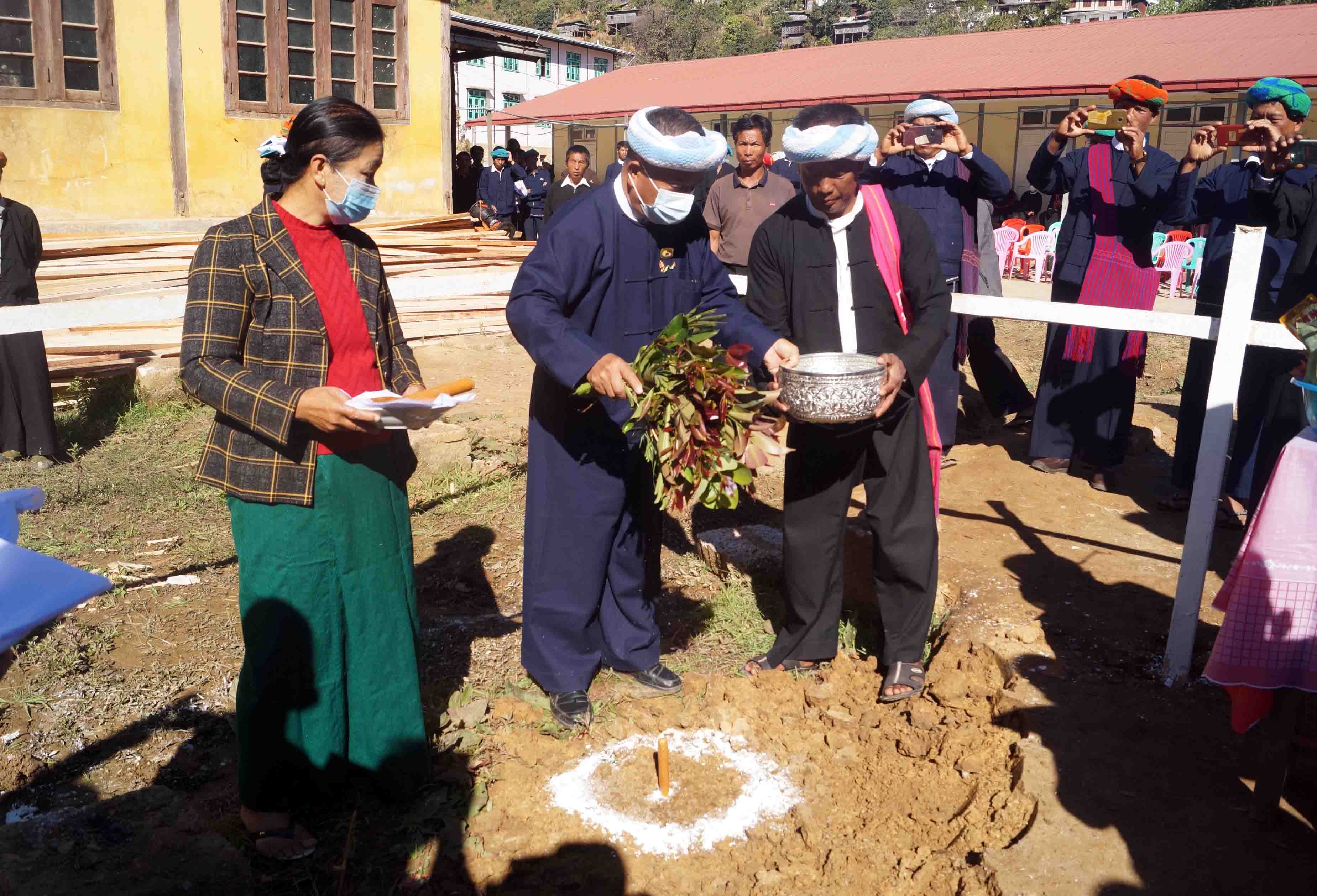 ပန္နက်တင်ပွဲတွင် ပြည်သူ့လွှတ်တော်ကိုယ်စားလှယ် ဦးခွန်သန်းထူး၊ ပြည်နယ်လွှတ်တော်ကိုယ်စားလှယ် ဦးခွန်မောင်ပယ်၊ မြို့နယ်စီမံခန့်ခွဲမှုကော်မတီဥက္ကဋ္ဌ၊ မြို့နယ် အုပ်ချုပ်ရေးမှူး ဦးသိန်းဇော်၊ ဒုတိယမြို့နယ် အုပ်ချုပ်ရေးမှူး ဦးစောမောင်ဗွေနှင့် တာဝန်ရှိသူများက ပညာရေးဝန်ကြီးဌာန၊ အခြေခံပညာဦးစီးဌာန၏ ၂၀၂၀-၂၀၂၁ ဘဏ္ဍာရေးနှစ်၊ ပြည်ထောင်စုခွင့်ပြုရန်ပုံငွေ ကျပ်(၁၆၈)သန်းဖြင့် သူရိယနဂါးအားမာန်ကုမ္ပဏီမှ တာဝန်ယူ တည်ဆောက်မည့် အလျားပေ ၁၀၀ ၊ အနံ ၃၀ ပေရှိ RCC(၂)ထပ် ကျောင်းဆောင်သစ်ကို ရတနာပန္နက်ရိုက်၍ အမွှေးနံသာရည်များဖြင့် ပက်ဖျန်းပေးကြကြောင်း သိရသည်။
