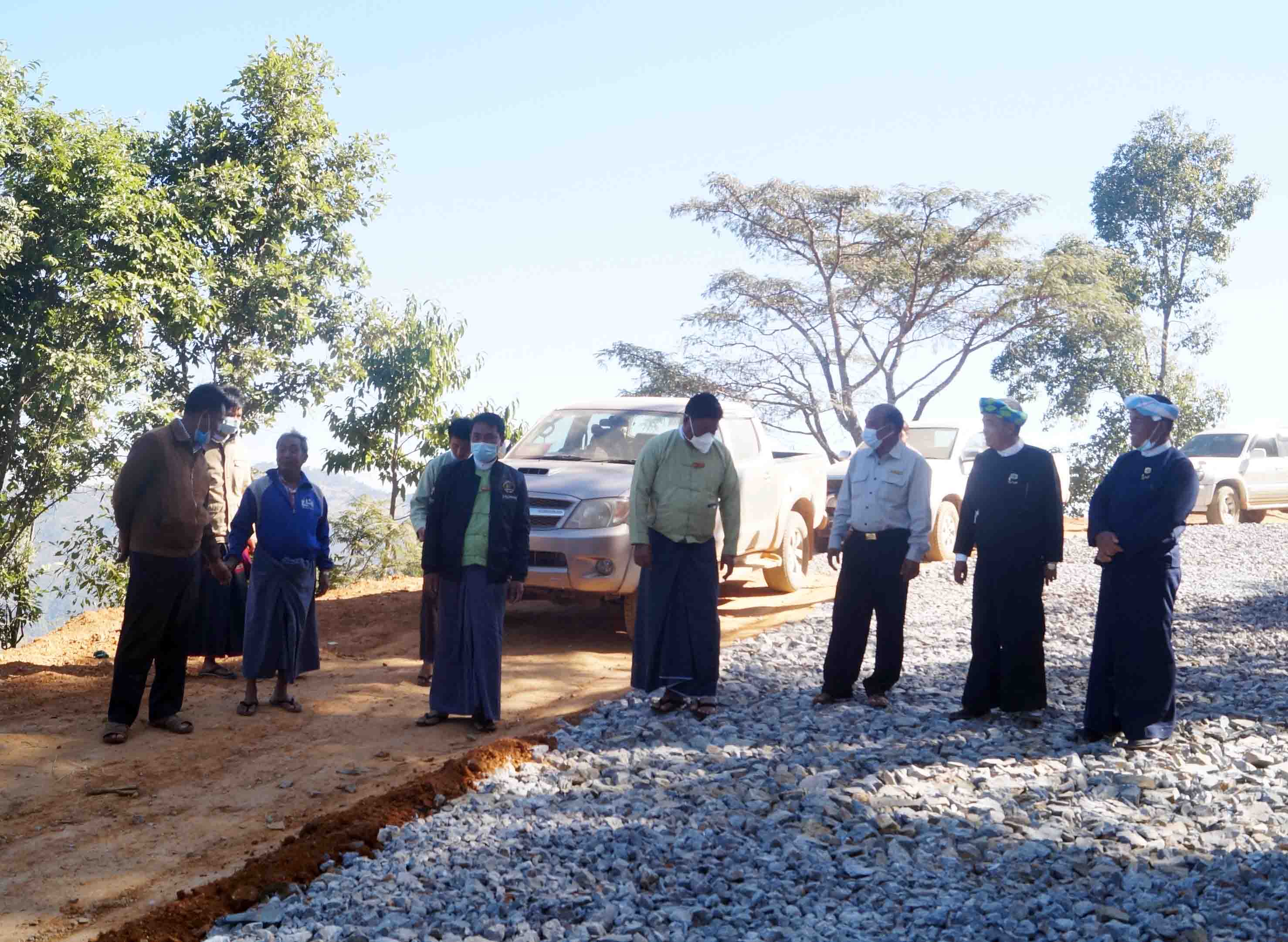 ထို့နောက် အဆိုပါအဖွဲ့သည် ဒေသခံပြည်သူများ သွားလာရေးအဆင်ပြေစေရေးအတွက် ၂၀၂၀-၂၀၂၁ ဘဏ္ဍာနှစ်၊ နယ်စပ်ရေးရာဝန်ကြီးဌာန၊ နယ်စပ်ဒေသနှင့် တိုင်းရင်းသား လူမျိုးများ ဖွံ့ဖြိုးတိုးတက်ရေးဦးစီးဌာန၊ နယ်စပ်ဒေသ ဖွံ့ဖြိုးရေး ပြည်ထောင်စုရန်ပုံငွေ ကျပ်(၁၉၁.၆၄၇)သန်း ဖြင့် ကျေးရွာ(၅)ရွာအကျိုးပြုသည့် ကျေးရွာချင်းဆက်လမ်း ဖြစ်သည့် လပ်တိုင်-ပင်အွန်းလမ်း (၇/၀)မိုင်အနက် (၁/၄)မိုင် ကျောက်ချောခင်းခြင်းလုပ်ငန်း ဆောင်ရွက်နေမှု အခြေအနေများကို ကြည့်ရှုစစ်ဆေးသည်။
