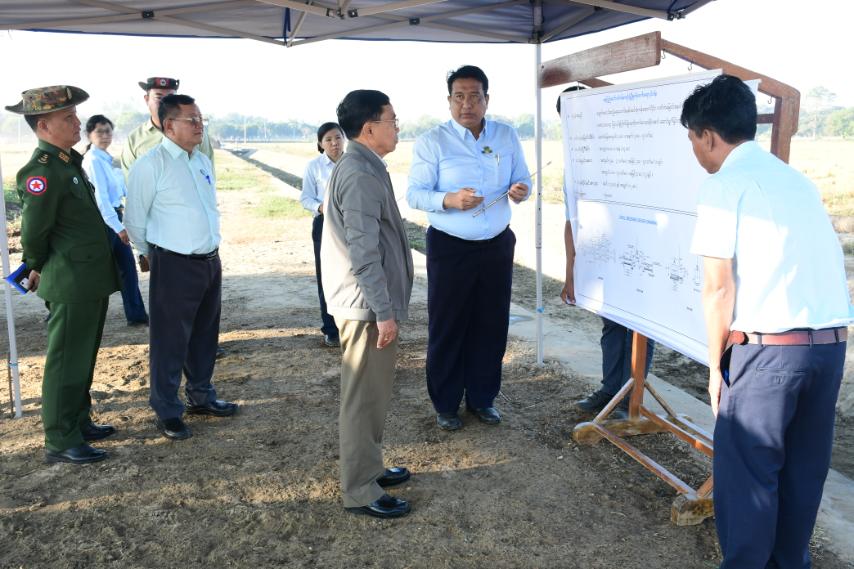 ထိုသို့ ကြည့်ရှုစစ်ဆေးရာတွင် သက်ဆိုင်ရာတာဝန်ရှိသူများက ချောင်းမငယ် ဆည်ရေသောက်စနစ် (ဆင်အုံကန်အောက်ပိုင်း) လက်တံမြောင်းအမှတ်(၁၁) RD-16800 ပေတွင် Level Crossing ပြုလုပ်၍ စိုက်ပျိုးရေတိုးတက်ပေးဝေနိုင်ရေး ဆောင်ရွက်ထားရှိမှုအခြေအနေများ၊ ရေထိန်းတံခါးတည်ဆောက်ထားရှိမှုအခြေအနေများနှင့် လုပ်ငန်းဆောင်ရွက်ပြီးစီးမှု အခြေအနေများကို ရှင်းလင်းတင်ပြရာ နေပြည်တော်ကောင်စီဥက္ကဋ္ဌ ဦးသန်းထွန်းဦးက လုပ်ငန်းများကို သတ်မှတ်အရည်အသွေးပြည့်မီစေရေး၊ မြောင်းဘောင်များ ရေရှည်ကြံ့ခိုင်မှုရှိစေရေး၊ သတ်မှတ်ကာလအတွင်းပြီးစီးရေး၊ လက်တံမြောင်းတစ်လျှောက် ရေလေလွင့်မှုမရှိစေရန်နှင့် ရေကူဒေသရှိစိုက်ပျိုးမြေများသို့ ဆည်ရေအပြည့်အဝပေးဝေနိုင်ရေး၊ သီးနှံစိုက်ပျိုးချိန်များတွင် ရေပေးဝေမှုအဟန့်အတားမဖြစ်စေရန်နှင့် စိုက်ပျိုးရေကို စိုက်ဧကများ တိုးချဲ့ပေးနိုင်ရေးတို့ကို အလေးထားဆောင်ရွက်ရမှာဖြစ်ကြောင်း မှာကြားသည်။