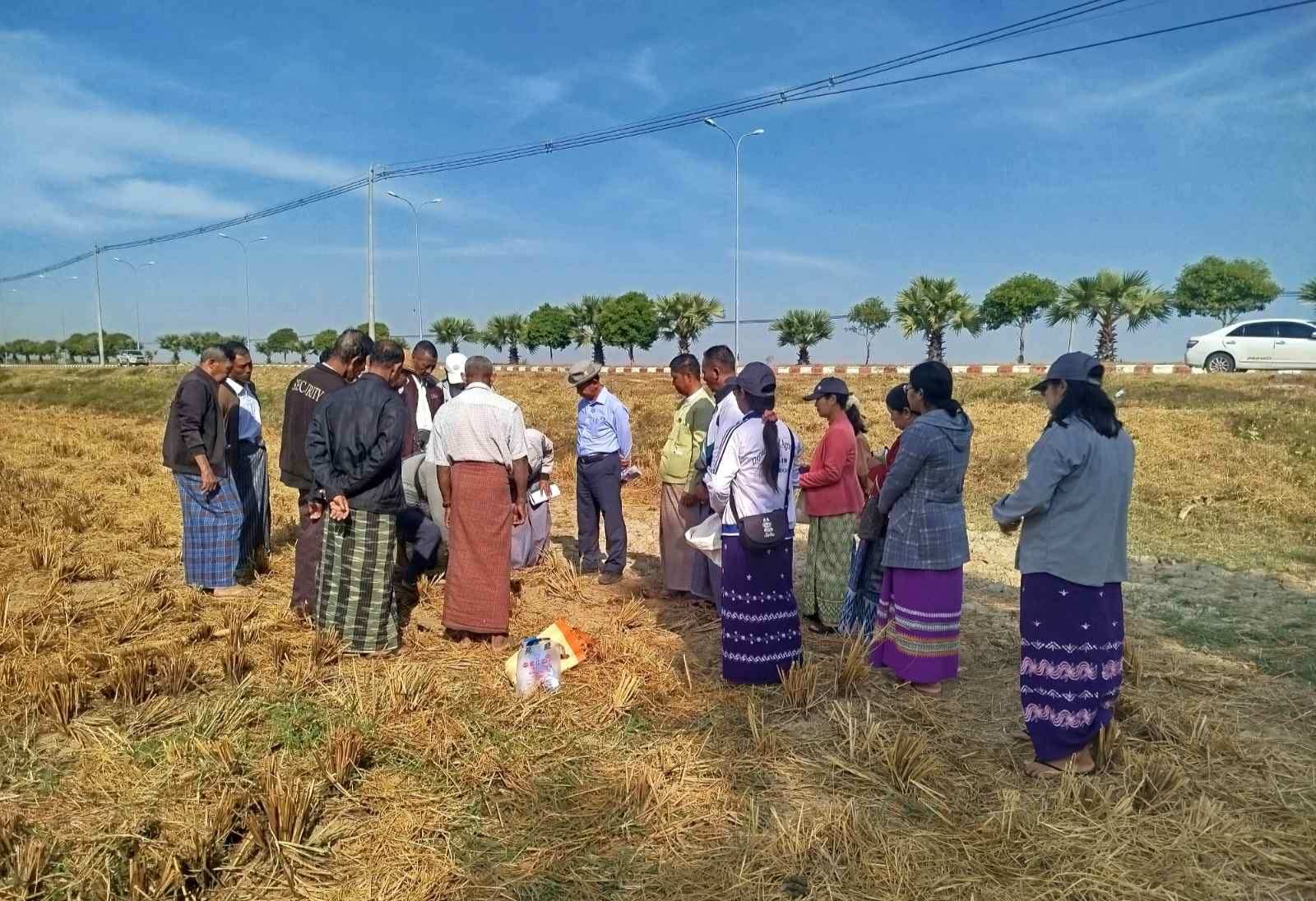 ဦးစွာ နေပြည်တော်ကောင်စီဝင် ဦးခင်မောင်လတ်နှင့် တာဝန်ရှိသူများသည် ဒက္ခိဏသီရိမြို့နယ်၊ ချိုင်းကျေးရွာအုပ်စု၊ ဦးပိုင်အမှတ် (၄၀/၁)၊ ကွင်းအမှတ် (၁၆၇၁)ကွင်း၊ တောင်သူ ဒေါ်ခေါင်ရွယ်၏ လယ်အတွင်းရှိမြေများအား ဓာတ်ခွဲစမ်းသပ်နိုင်ရေးအတွက် မြေနမူနာကောက်ယူခြင်းနှင့် ရွာမကျေးရွာအုပ်စု၊ ဦးပိုင်အမှတ် (၃၆)၊ ကွင်းအမှတ် (၁၆၇၂)ကွင်း၊ တောင်သူ ဦးဇော်လွင်၏ လယ်အတွင်းရှိမြေများအား ဓာတ်ခွဲစမ်းသပ်နိုင်ရေးအတွက် မြေနမူနာကောက်ယူခြင်းလုပ်ငန်းဆောင်ရွက်မှုပြုလုပ်ခဲ့ရာ နေပြည်တော်ကောင်စီဝင်က စိုက်ပျိုးမည့်မြေများကို သက်ဆိုင်ရာဌာနများနှင့်ပေါင်းစပ်၍ မြေဆီလွှာအမျိုးအစားများကို စမ်းသပ်စစ်ဆေးပြီး လိုအပ်သည့် ပြုပြင်ဆောင်ရွက်မှုများကို ဆောင်ရွက်ရန်လိုအပ်ကြောင်း၊ မြေဆီလွှာအနေအထားကိုမူတည်ပြီး လိုအပ်သည့် သွင်းအားစုများကို စနစ်တကျ ထည့်သွင်းဆောင်ရွက်မှသာလျှင် သီးနှံများ အောင်မြင်ဖြစ်ထွန်းမှာဖြစ်ကြောင်း၊ စိုက်ပျိုးရေရရှိစေရန် နည်းလမ်းမျိုးစုံ အသုံးပြုဆောင်ရွက်ရေး၊ မျိုး၊ မြေ၊ ရေ၊ နည်း မှန်ကန်စွာ စနစ်တကျ စိုက်ပျိုးစေရေးတို့ကို မှာကြားခဲ့သည်။