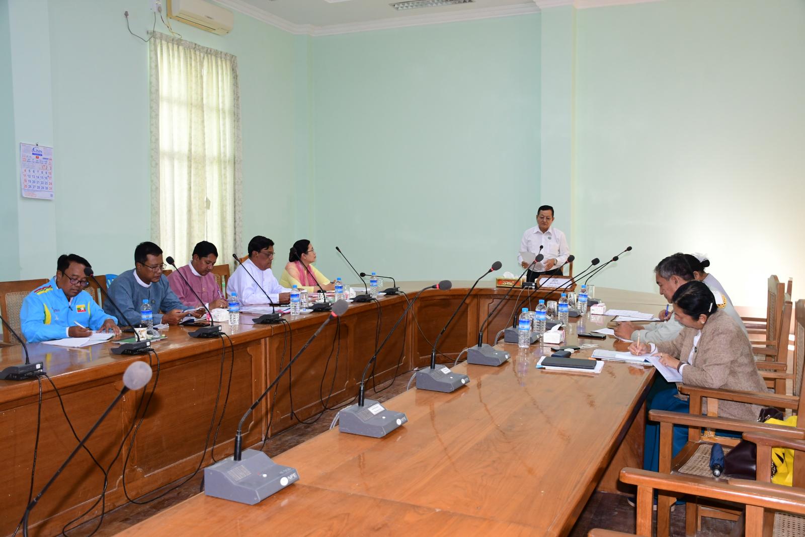 နေပြည်တော်အဆင့်ဌာနဆိုင်ရာလုပ်ငန်းညှိနှိုင်းအစည်းအဝေးကို ယနေ့မွန်းလွဲပိုင်းတွင် နေပြည်တော်ကောင်စီရုံး အစည်းအဝေးခန်းမ(၂)၌ ကျင်းပပြုလုပ်ရာ နေပြည်တော်ကောင်စီဝင် ဦးမြင့်စိုး၊ နေပြည်တော်အဆင့်ဌာနဆိုင်ရာများနှင့် ဖိတ်ကြားထားသူများ တက်ရောက်သည်။