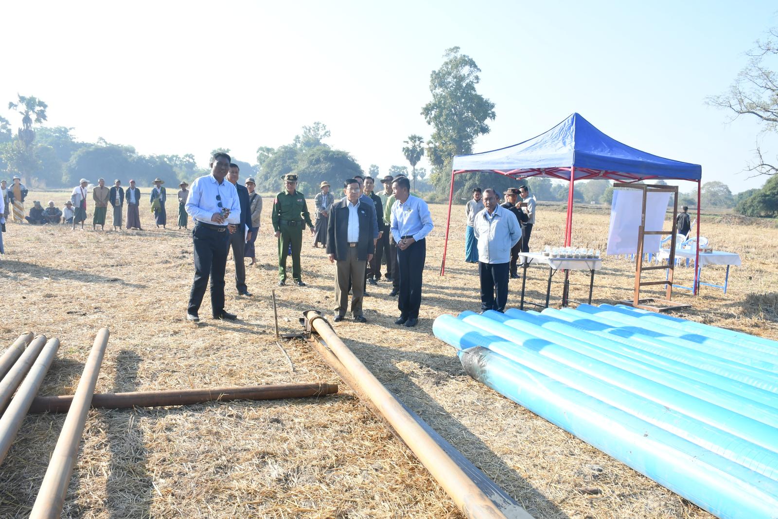 ထို့နောက် နေပြည်တော်ကောင်စီဥက္ကဋ္ဌ ဦးသန်းထွန်းဦးသည် ယမန်နေ့နံနက်ပိုင်းတွင် တာဝန်ရှိသူများနှင့်အတူ တပ်ကုန်းမြို့နယ်၊ ကြိုးကြာအင်းကျေးရွာ၊ ကွင်းအမှတ်(၉၈၁)တွင် ဆိုလာရေတင်စနစ်ဖြင့် စိုက်ဧက ၃၀ ဧက အတွက် စိုက်ပျိုးရေပေးဝေနိုင်ရေး ဆောင်ရွက်နေမှု အခြေအနေအား ကြည့်ရှုစစ်ဆေးပြီး တာဝန်ရှိသူများမှ လုပ်ငန်းဆောင်ရွက်နေမှုအခြေအနေများကို ရှင်းလင်းတင်ပြရာ နေပြည်တော်ကောင်စီဥက္ကဋ္ဌက လိုအပ်သည်များမှာကြားသည်။