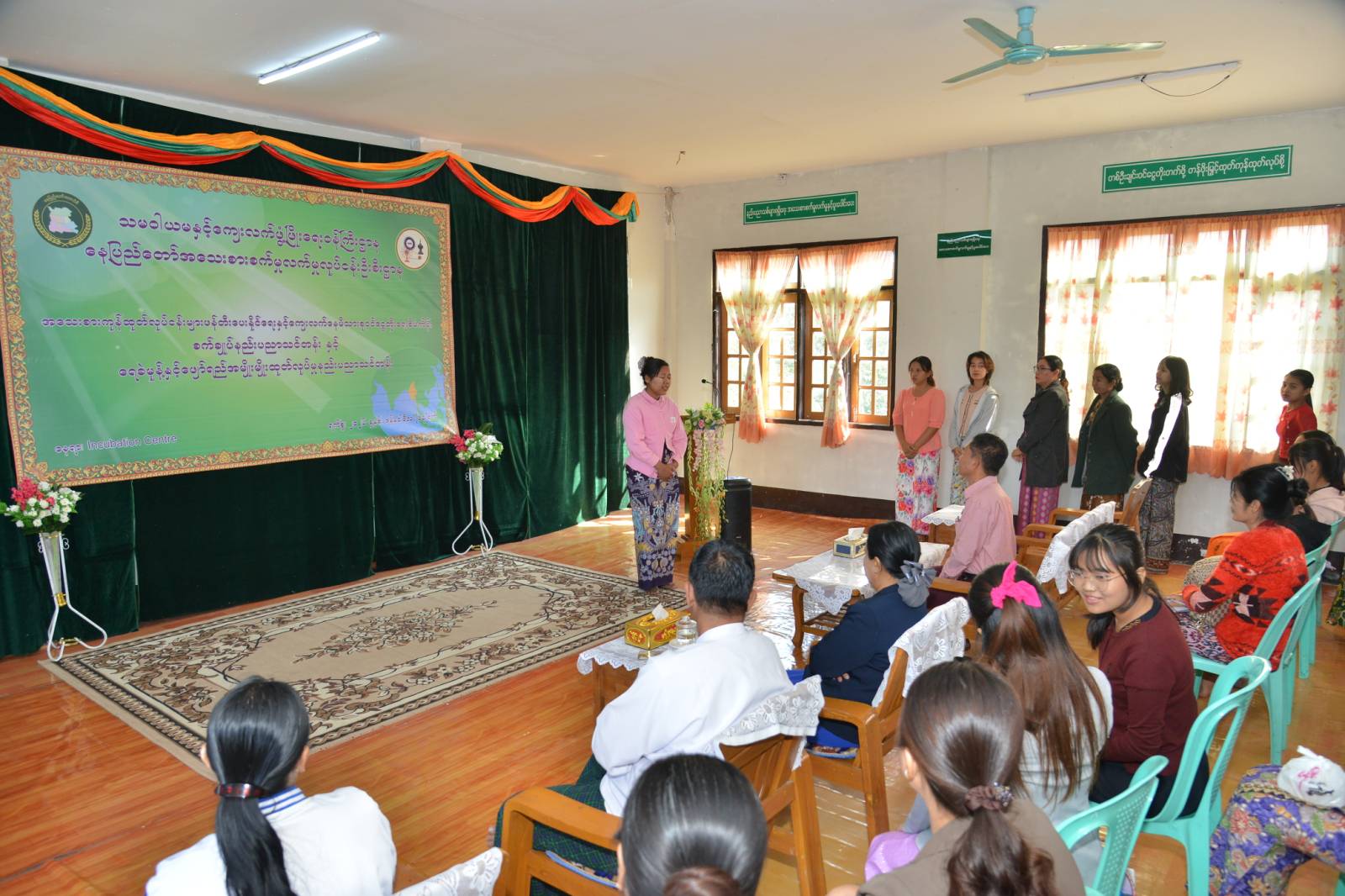 ပြည်ထောင်စုနယ်မြေ၊ နေပြည်တော်အသေးစားစက်မှုလက်မှုလုပ်ငန်းဦးစီးဌာနမှ နေပြည်တော်ကောင်စီ ဖြည့်စွက်ဘဏ္ဍာရန်ပုံငွေဖြင့် ကျေးလက်နေမိသားစုဝင်ငွေတိုးရေးစီမံကိန်းလုပ်ငန်းဖြင့် ဆောင်ရွက်မည့် စက်ချုပ်နည်းပညာသင်တန်းနှင့် ရေခဲမုန့်နှင့်ဖျော်ရည်အမျိုးမျိုးထုတ်လုပ်မှုနည်းပညာသင်တန်းဖွင့်ပွဲ အခမ်းအနားကို ယနေ့နံနက်ပိုင်းတွင် နေပြည်တော်အသေးစားစက်မှုလက်မှုလုပ်ငန်းဦးစီးဌာနရှိ Incubation Center ၌ ကျင်းပရာ အခမ်းအနားသို့ နေပြည်တော်ကောင်စီဝင် ဦးမင်းဦး၊ ဒက္ခိဏသီရိမြို့နယ် စီမံခန့်ခွဲရေးနှင့်အုပ်ချုပ်ရေးကော်မတီဥက္ကဋ္ဌ ဦးနိုင်ဝင်း၊ နေပြည်တော်အသေးစားစက်မှုလက်မှုလုပ်ငန်းဦးစီးဌာနမှ တာဝန်ရှိသူများ၊ ရပ်မိရပ်ဖများ၊ သင်တန်းသူများ တက်ရောက်ကြသည်။
