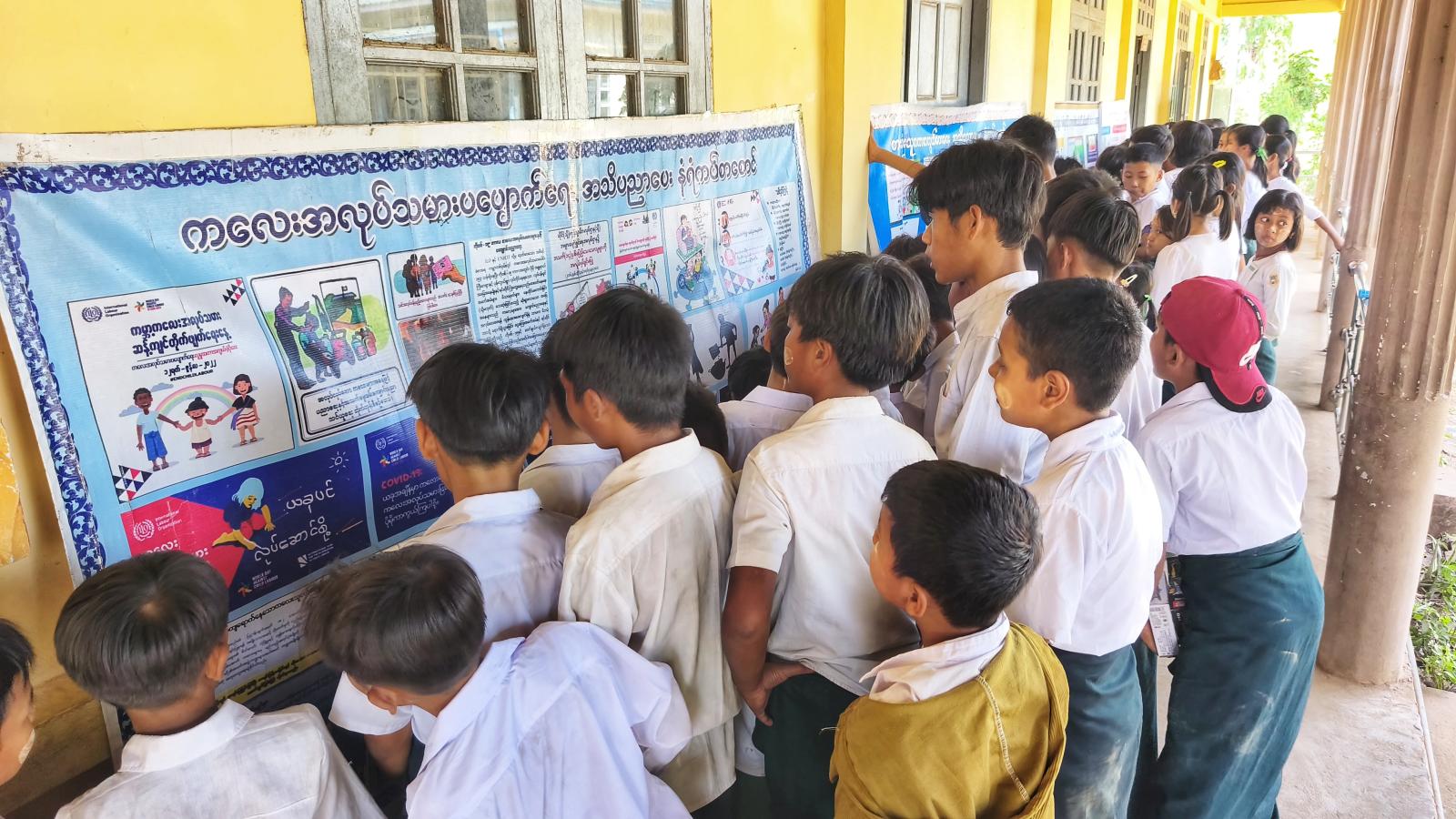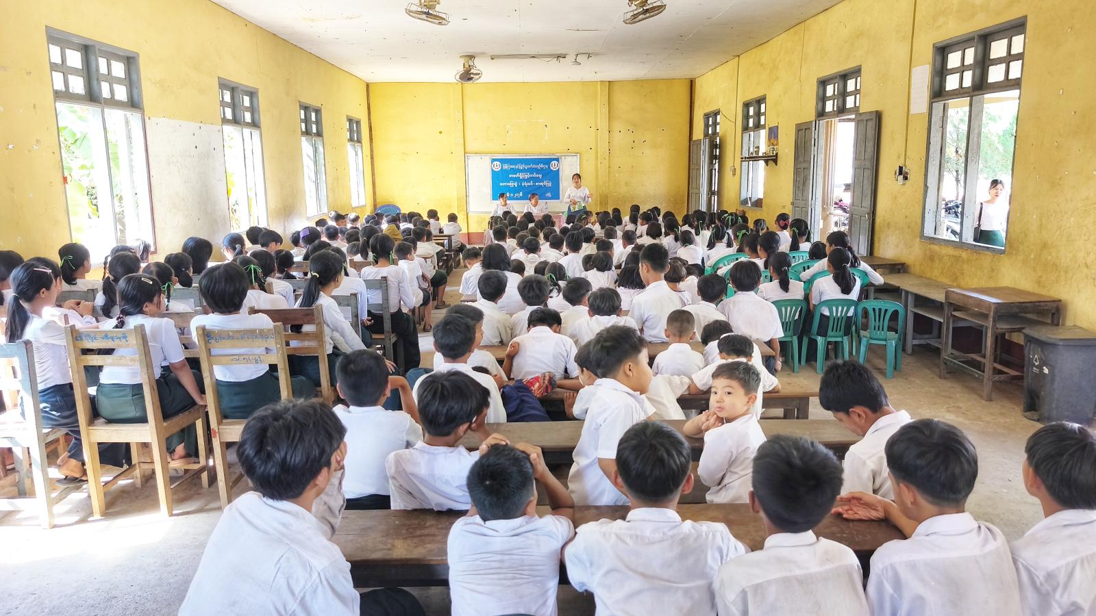 ဦးစွာ ကျောင်းအုပ်ဆရာမကြီး ဒေါ်လေးလေးနွယ်က အမှာစကားပြောကြားပြီး မုဒုံမြို့နယ် ပြန်ကြားရေးနှင့်ပြည်သူ့ဆက်ဆံရေးဦးစီးဌာနမှ ဒုတိယဦးစီးမှူး ဒေါ်ဇာဇာဖြိုးက ကျောင်းသား/သူများ အသိပညာဗဟုသုတများ ပြည့်စုံစေရန်နှင့် စာဖတ်ရှိန်မြင့်မားစေရေးအတွက် ကျောင်းစာအပြင် ပြင်ပစာပေများဖြစ်သည့် ရုပ်ပြ၊ ကာတွန်း စသည့် စာအုပ်စာစောင်များကို လေ့လာဖတ်ရှုကြရန်နှင့် အကျိုးအကြောင်း၊ အဆိုးအကောင်းများကို ဝေဖန်ပိုင်းခြားနိုင်ရေးအတွက် စာပေများ ဖတ်ရှုလေ့လာကြရန် ပြောကြားသည်။ ထို့နောက် စားသုံးသူကာကွယ်ရေး အကြောင်းအရာများ၊ ကလေးအလုပ်သမားပပျောက်ရေး အသိပညာပေးခြင်းနှင့် လူကုန်ကူးမှုအန္တရာယ် အကြောင်းအရာများကို ရှင်းလင်းပြောကြားခဲ့သည်။