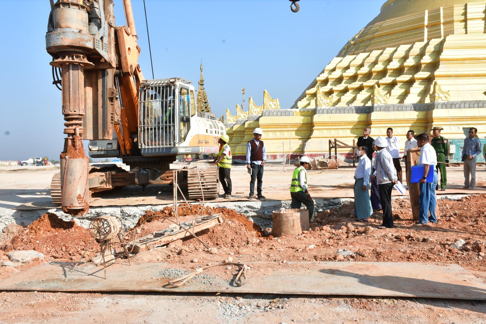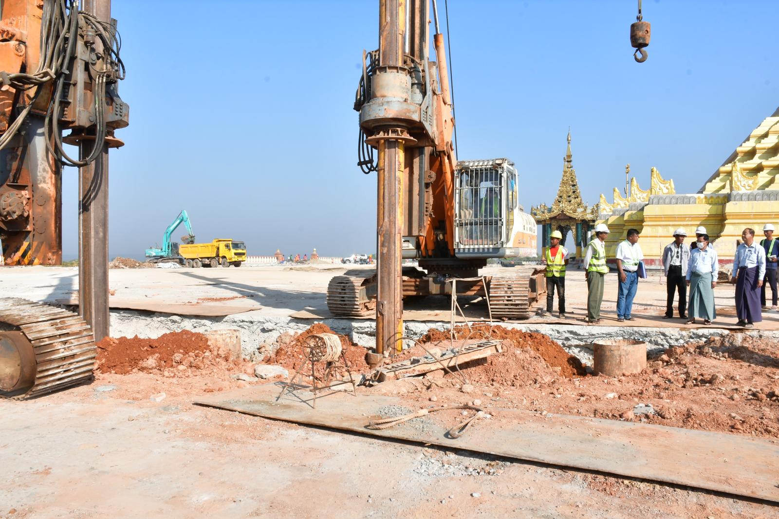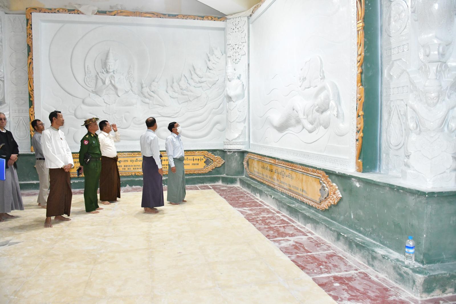 ဦးစွာ နေပြည်တော်ကောင်စီဥက္ကဋ္ဌ ဦးသန်းထွန်းဦးသည် ရင်ပြင်တော်၊ ပစ္စယာနှင့် ပရိဝုဏ်များ ထိခိုက်ပျက်စီးမှုနှင့် ပြုပြင်မွမ်းမံရေးလုပ်ငန်းများ ဆောင်ရွက်နေမှု အခြေအနေများ၊ Cement grouting ဆောင်ရွက်နေမှုများ၊ Soil stabilization ဆောင်ရွက်နေမှုများ၊ Backhoe breaker ဖြင့် မူလရင်ပြင်တော် ကြမ်းခင်းအား တူးထုတ်ပြင်ဆင်နေမှု အခြေအနေများ၊ Bored pile (600mm 60'အနက်) တူးစက်များဖြင့် မြေကျွင်းတူးခြင်းလုပ်ငန်း ဆောင်ရွက်နေမှုအခြေအနေများ၊ စေတီတော်လိုဏ်အတွင်း ကွန်ကရစ်ကြမ်းခင်းအောက်ခြေရှိမြေသားများနိမ့်ကျမှု ဖြစ်ပေါ်ခဲ့ပြီး စေတီတော်ပန်းတည်ခုံပတ်လည်ရှိ အုတ်ရိုးများ ကွဲအက်မှုများမှ Void Filling လုပ်ငန်းဆောင်ရွက်နေမှုအခြေအနေများကို ကြည့်ရှုစစ်ဆေးရာ တာဝန်ရှိသူများမှ တင်ပြချက်များအပေါ် နေပြည်တော်ကောင်စီဥက္ကဋ္ဌက လုပ်ငန်းများ အမြန်ဆုံးပြီးစီးအောင် ဆောင်ရွက်ရေး၊ သတ်မှတ်စံချိန်စံညွှန်းများနှင့်အညီ ရေရှည်ခိုင်ခံ့မှုရှိအောင် ဆောင်ရွက်ရေး၊ နည်းပညာပိုင်းဆိုင်ရာ ပြုပြင်မွမ်းမံရေးလုပ်ငန်းများကို စနစ်တကျစီမံဆောင်ရွက်နိုင်ရေး၊ စေတီတော်လိုဏ်အတွင်း စကျင်ကျောက်ပန်းချီများ ပြုပြင်ခြင်း၊ ကျောက်စိမ်းပြားများ ပြုပြင်ခြင်းလုပ်ငန်းနှင့်ကျန်ရှိသည့်အပိုင်းကို စံချိန်စံညွှန်းနှင့်အညီ ဆောင်ရွက်ရေး တို့ကိုမှာကြားပြီး လုပ်ငန်းလိုအပ်ချက်များကို ပေါင်းစပ်ဆောင်ရွက်ပေးသည်။