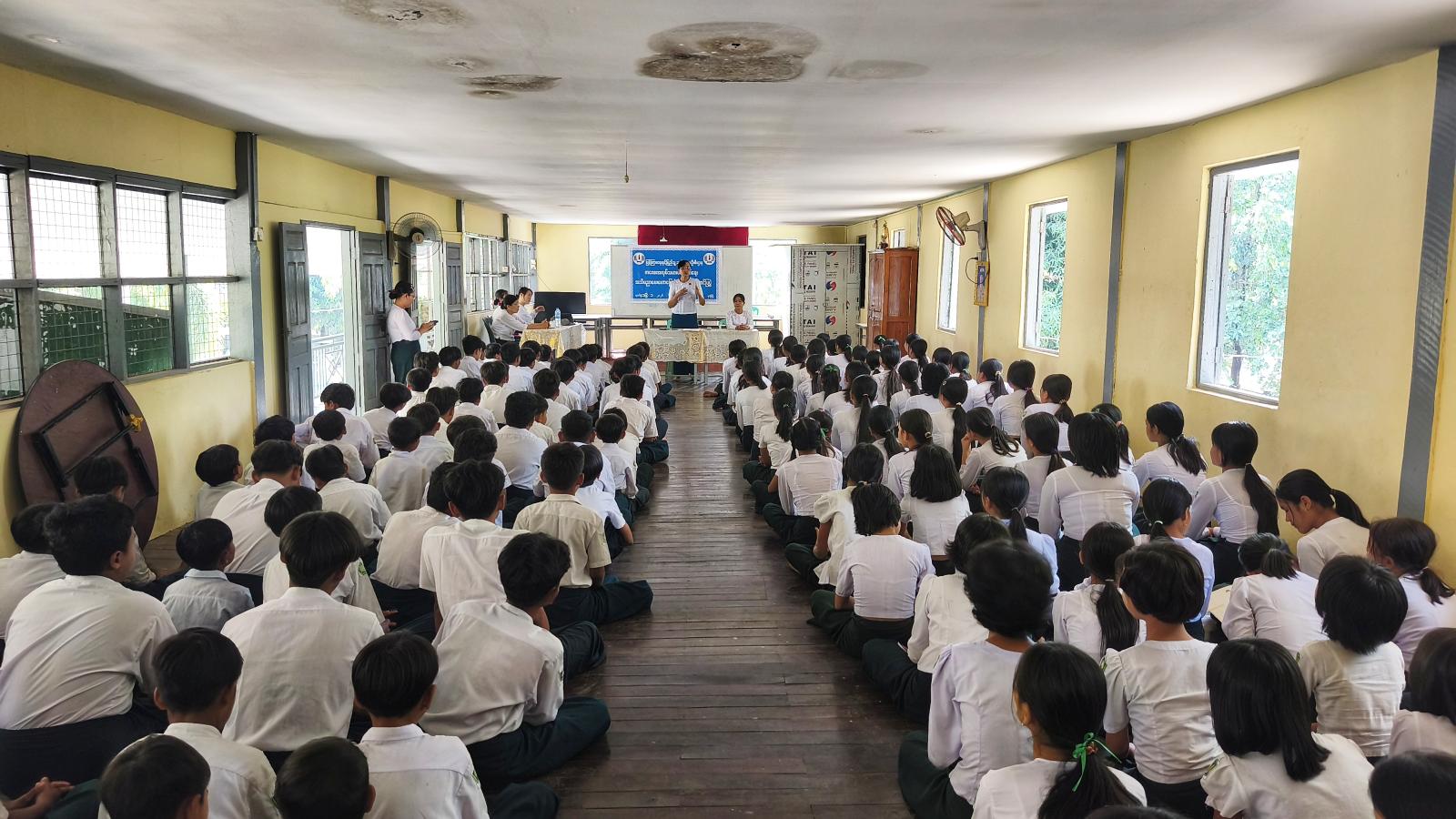 ဟောပြောပွဲတွင် ကျောင်းအုပ်ဆရာမကြီး ဒေါ်မြင့်မြင့်မူက အဖွင့်အမှာစကားပြောကြားပြီး မြို့နယ်ပြန်ကြားရေးနှင့်ပြည်သူ့ဆက်ဆံရေးဦးစီးဌာန ဦးစီးအရာရှိက ကလေးအလုပ်သမားဟူသည် ၎င်း၏ ကလေးဘဝ ရှေ့အလားအလာနှင့် ဂုဏ်သိက္ခာကင်းမဲ့စေပြီး ရုပ်ပိုင်းနှင့်စိတ်ပိုင်းဆိုင်ရာ ဖွံ့ဖြိုးတိုးတက်မှုကို ထိခိုက်နစ်နာသည့် အလုပ်မျိုးတွင် လုပ်ကိုင်နေရသူများကို ဆိုလိုကြောင်း၊ မည်သည့်အလုပ်မျိုးကိုမဆို အသက်(၁၄)နှစ်အောက် ကလေးများအား လုပ်ကိုင်ခွင့်မပြုရန် ဥပဒေများက တင်းကြပ်စွာတားမြစ်ထားကြောင်း၊ အဆိုးဝါးဆုံးပုံစံဖြင့် ခိုင်းစေခြင်းများ၊ ကလေးအလုပ်သမားများ၏ အလုပ်ချိန်များနှင့် အသက်အရွယ်၊ ကလေးအလုပ်သမားများ ပပျောက်ရေး ရည်မှန်းချက် (၃)ရပ် စသည့်အကြောင်းအရာများကို ရှင်းလင်းပြောကြားသည်။