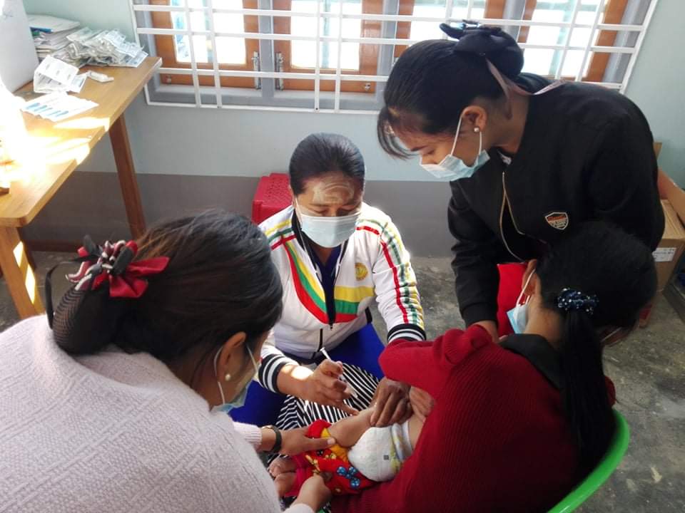 အဆိုပါကာကွယ်ဆေး ထိုးနှံတိုက်ကျွေးရာတွင် တိုက်နယ်ကျန်းမာရေးဌာန အမျိုးသမီးကျန်းမာရေး ဆရာမ ဒေါ်အေးအေးသန်းနှင့် ဝန်ထမ်းများက ကျန်းမာရေးနှင့် အားကစား ဝန်ကြီးဌာနမှ ထုတ်ပြန် ထားသည့် ညွှန်ကြားချက်များကို တိကျစွာလိုက်နာ ဆောင်ရွက်စေခြင်းဖြင့် ကိုယ်ဝန် ဆောင်မိခင်များနှင့် အသက်(၂)လမှ (၁)နှစ်ခွဲအောက် ကလေးငယ်များအား ဆုံဆို့၊ ကြက်ညှာ၊ မေးခိုင်၊ အသည်းရောင် အသားဝါ(ဘီ)ဦးနှောက်အမြှေးရောင်(ငါးမျိုးစပ်ကာကွယ်ဆေး)၊ ပြင်းထန် အဆုတ်ရောင် (ပီစီဗီ) ဆေး ထိုးနှံ ပေးခြင်းနှင့် ပိုလီယို အကြောသေရောဂါ ကာကွယ်ဆေးကိုလည်း တိုက်ကျွေး ပေးလျက် ရှိ ကြောင်း၊ လစဉ်ပုံမှန် ကာကွယ်ဆေးထိုးနှံခြင်းလုပ်ငန်းများကို ဆောင်ရွက် သွားမည် ဖြစ်ကြောင်း သိရ သည်။
