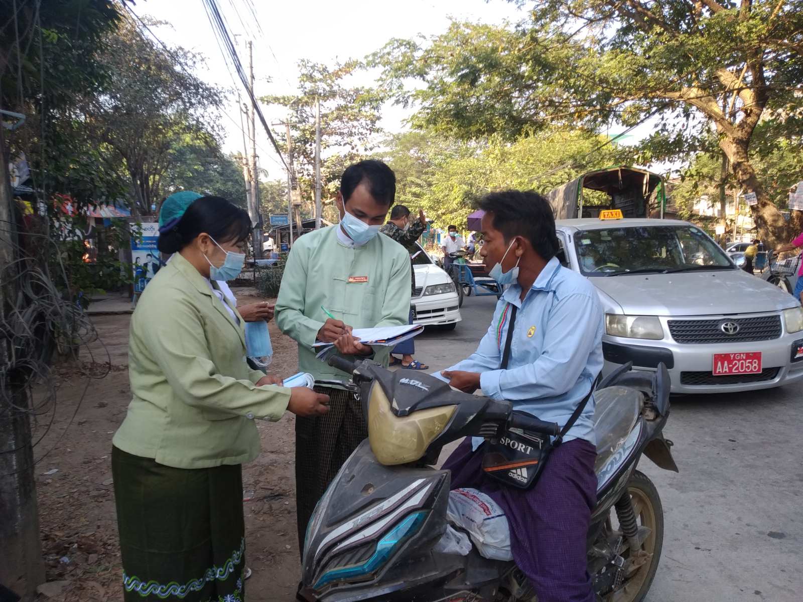 Mask Campaign ပြုလုပ်ခြင်းနှင့် ပါးစပ်၊ နှာခေါင်းစည်း (Mask) မတပ်သူများအား စစ်ဆေး ကြပ်မတ်အရေးယူခြင်းကို မြို့နယ် ကိုဗစ်-၁၉ ရောဂါ အရေးပေါ်တုံ့ပြန်ရေးကော်မတီဝင်များ၊ ရဲတပ်ဖွဲ့ဝင်များ၊ မီးသတ်တပ်ဖွဲ့ဝင်များ၊ မြို့နယ်စည်ပင်သာယာရေးကော်မတီနှင့် ရပ်ကွက် အုပ်ချုပ်ရေးမှူးများ ပါဝင်သော ပူးပေါင်းအဖွဲ့မှ ပါးစပ်နှာခေါင်းစည်း (mask) တပ်ဆင်ထား ခြင်းမရှိသော စျေးအတွင်းရှိ စျေးသူ၊ စျေးသားများနှင့် စျေးဝယ်လာသူများအား Mask Campaign ပြုလုပ်ပြီး အသိပညာ ပေးခြင်းများ ပြုလုပ်ကာ လမ်းသွားလမ်းလာများ၊ စက်ဘီး၊ ဆိုင်ကယ်၊ မော်တော်ယာဉ်များ ပေါ်တွင် လိုက်ပါလာသူများအား ပါးစပ်၊ နှာခေါင်းစည်း တပ်ဆင်ခြင်း မရှိသူများ၊ စည်းကမ်း မလိုက်နာသူများအား ဒဏ်ငွေ(၂၀၀)ကျပ် ပေးဆောင်စေ ကာ ချက်ခြင်းဝယ်ယူ တပ်ဆင်စေခဲ့ကြောင်း သိရသည်။