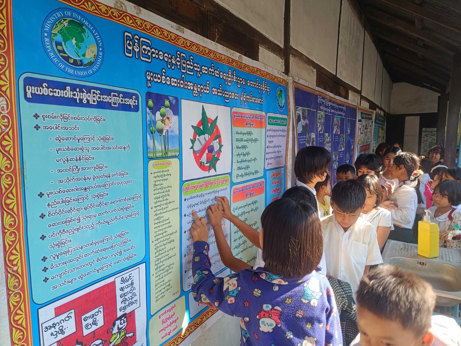 ပဲခူးတိုင်းဒေသကြီး၊ တောင်ငူခရိုင်ပြန်ကြားရေးနှင့်ပြည်သူ့ဆက်ဆံရေးဦးစီးဌာနနှင့် ပညာရေးဌာနတို့ပူးပေါင်း၍ ယမန်နေ့မွန်းလွဲပိုင်းက တောင်ငူမြို့၊ အလက (ခွဲ) (စျေးတန်းဟောင်း) ကျောင်း၌ အသိပညာပေးဟောပြောပွဲနှင့် နံရံကပ်စာစောင်ပြပွဲ ဆောင်ရွက်သည်။