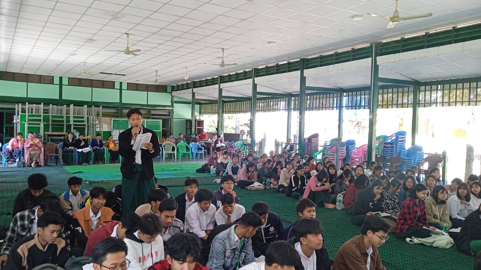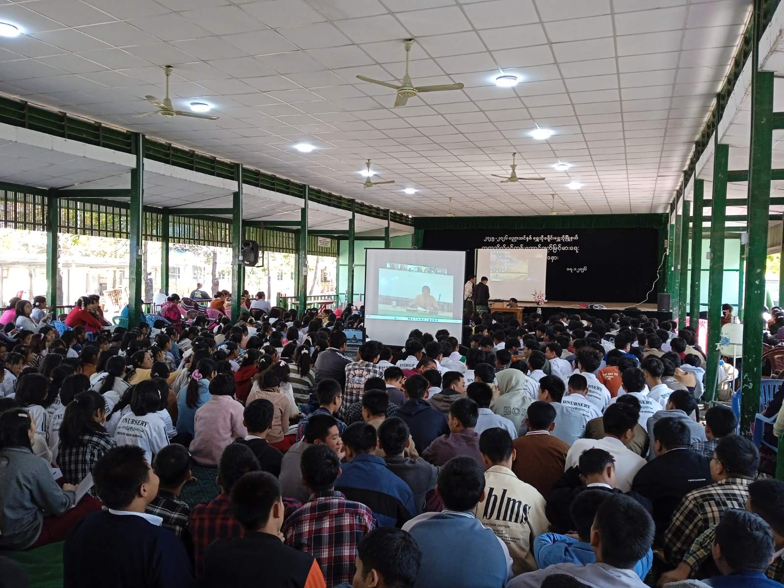 စစ်ကိုင်းတိုင်းဒေသကြီး၊ ရွှေဘိုမြို့၊ အမှတ်(၂) အခြေခံပညာအထက်တန်းကျောင်း ရွှေရတုခန်းမတွင် တက္ကသိုလ်ဝင်တန်းဖြေဆိုမည့် ကျောင်းသား/သူများ အောင်ချက်မြင့်မားလာစေရန်ရည်ရွယ်၍ အွန်လိုင်းမှတဆင့် ဟောပြောပွဲအခမ်းအနားကို ယနေ့နံနက်ပိုင်းက ကျင်းပပြုလုပ်ခဲ့ကြောင်းသိရသည်။