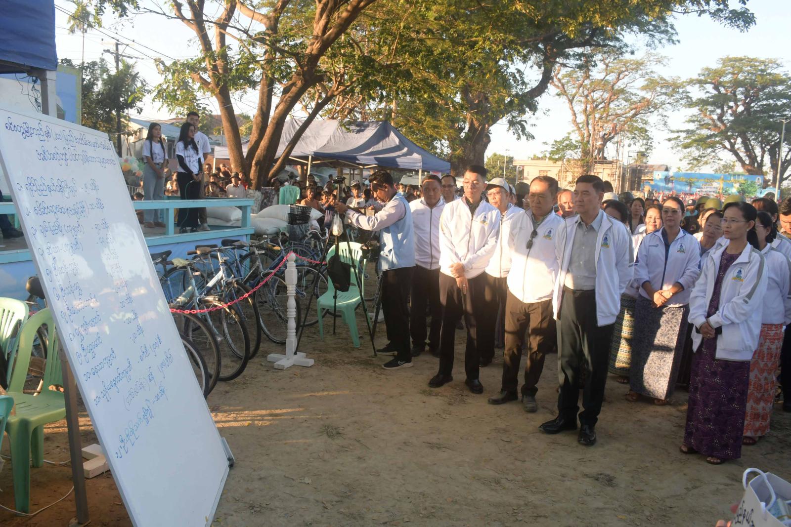 ဇန်နဝါရီ ၂၂ ရက်ညနေပိုင်းတွင် ပြည်နယ်ဝန်ကြီးချုပ်၊ ပြည်နယ်အမျိုးသမီးရေးရာအဖွဲ့ နာယကနှင့်အဖွဲ့ဝင်များသည် စစ်တွေမြို့တည် နှစ်(၂၀၀)ပြည့်အထိမ်းအမှတ်တေးဂီတဖျော်ဖြေပွဲနှင့် စက်ဘီးအစီး(၂၀၀)၊ ဆန်နှင့် ငွေသားဆုများ ကံစမ်းမဲဖောက်ပေးနေမှုအား လှည့်လည်ကြည့်ရှုအားပေးကြသည်။
