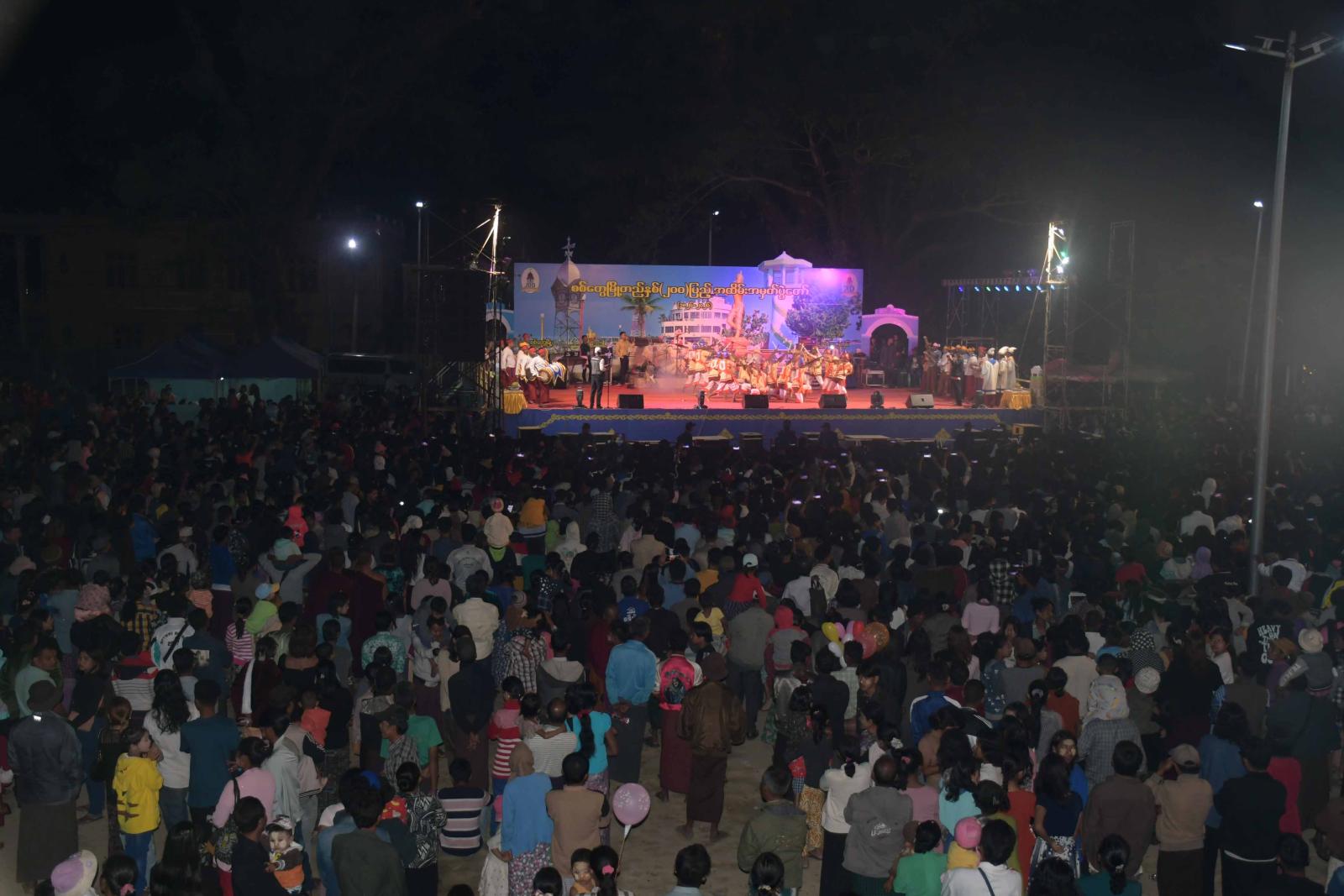 ရခိုင်ပြည်နယ်ဝန်ကြီးချုပ် ဦးထိန်လင်းနှင့်ဇနီး ပြည်နယ်အမျိုးသမီးရေးရာအဖွဲ့ နာယက ဒေါ်ဆွေဆွေမြတ်၊ ပြည်နယ်အစိုးရအဖွဲ့ဝင်များနှင့်ဇနီးများ၊ ဌာနဆိုင်ရာများ၊ ပွဲတော်ဖြစ်မြောက်ရေးကော်မတီဥက္ကဋ္ဌနှင့် တာဝန်ရှိသူများသည် ဇန်နဝါရီ ၂၂ ရက် ညနေပိုင်းတွင် ဝင်္ကဘာကွင်း၌ စစ်တွေမြို့ တည်နှစ်(၂၀၀)ပြည့် အထိမ်းအမှတ်တေးဂီတဖျော်ဖြေပွဲနှင့် ကံစမ်းမဲဖောက်ပေးနေမှုအား ကြည့်ရှုအားပေးသည်။