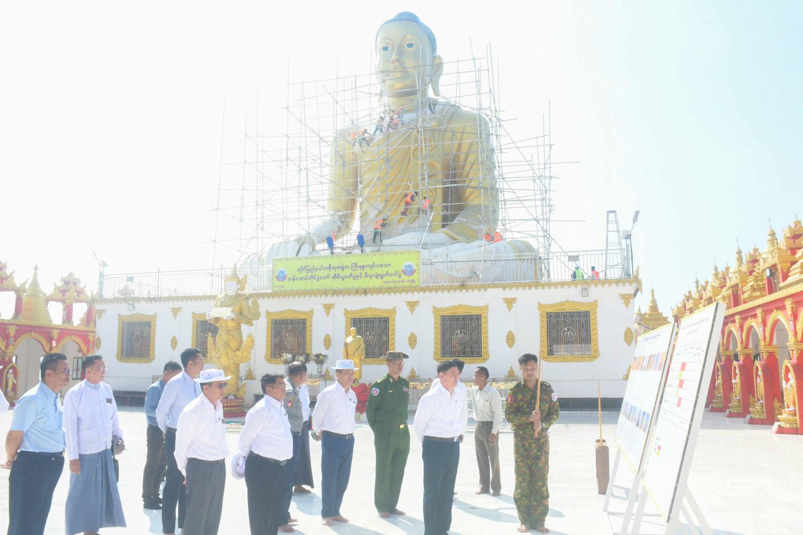 ပြည်နယ်ဝန်ကြီးချုပ်သည် ယနေ့နံနက်ပိုင်းက စစ်တွေမြို့ ဂစ္ဆပရပ်ကွက်ရှိ ရန်ပြေမာန်ပြေဘုရားကြီးအား လုံးတော်ပြည့် ရွှေသင်္ကန်းကပ်လှူ ပူဇော်နေမှုကို သွားရောက်ကြည့်ရှုရာ လုပ်ငန်းတာဝန်ခံက ရွှေသင်္ကန်းကပ်လှူပူဇော်ရန် ဆောင်ရွက်နေမှုနှင့် ဆောင်ရွက်ပြီးစီးမှု အခြေအနေအား ရှင်းလင်းတင်ပြသည်။ ယင်းနောက် ပြည်နယ်ဝန်ကြီးချုပ်နှင့်အဖွဲ့သည် ဘုရားကြီးအား လုံးတော်ပြည့်ရွှေသင်္ကန်းကပ်လှူရန် ဆောင်ရွက်နေမှုအခြေအနေများအား လှည့်လည်ကြည့်ရှုကြပြီး လိုအပ်သည်များကို တာဝန်ရှိသူများနှင့် ညှိနှိုင်းပေါင်းစပ်ပေးသည်။