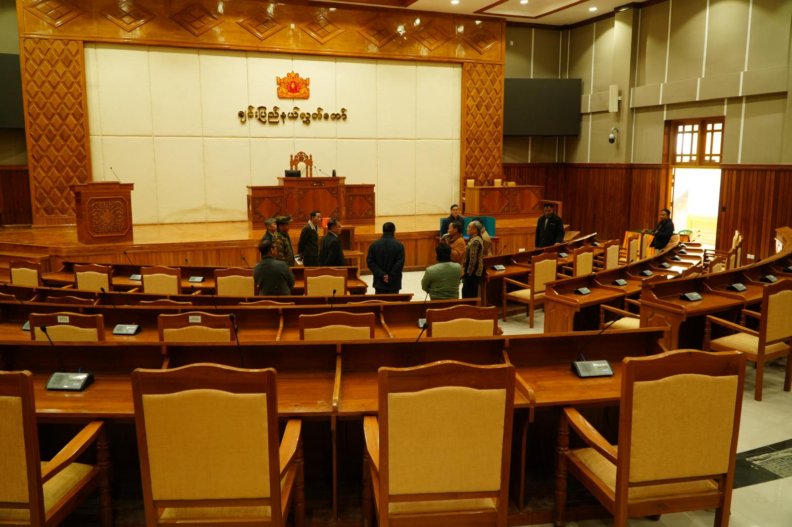 ချင်းပြည်နယ်ဝန်ကြီးချုပ် ဒေါက်တာဝုန်ဆွန်းထန်သည် ပြည်နယ်ဝန်ကြီးများနှင့်အတူ ယမန်နေ့ မွန်းလွဲပိုင်းက ချင်းပြည်နယ်လွှတ်တော်ရုံးသို့သွားရောက်ပြီး ချင်းပြည်နယ်လွှတ်တော်ရုံး ပြန်လည်ဖွင့်လှစ်နိုင်ရေးအတွက် ကြိုတင်ပြင်ဆင်ဆောင်ရွက်ထားရှိမှုအခြေအနေများကို ကြည့်ရှုစစ်ဆေးပြီး ပြည်နယ်လွှတ်တော်ရုံး ညွှန်ကြားရေးမှူး ဦးဇော်နိုင်ငြိမ်းက လွှတ်တော်အစည်းအဝေးခန်းမ၊ လွှတ်တော်ဥက္ကဋ္ဌ၊ ဒုတိယဥက္ကဋ္ဌရုံးခန်းများ၊ ရေးရာရုံးခန်းများနှင့် ချင်းပြည်နယ်လွှတ်တော်ရုံးပိုင် မန်းထားရိပ်သာ ကြိုတင်ပြင်ဆင်ဆောင်ရွက်ထားရှိမှုအခြေအနေများကို ရှင်းလင်းတင်ပြကာ ပြည်နယ်ဝန်ကြီးချုပ်ကလိုအပ်ချက်များ ပေါင်းစပ်ညှိနှိုင်းပေးသည်။