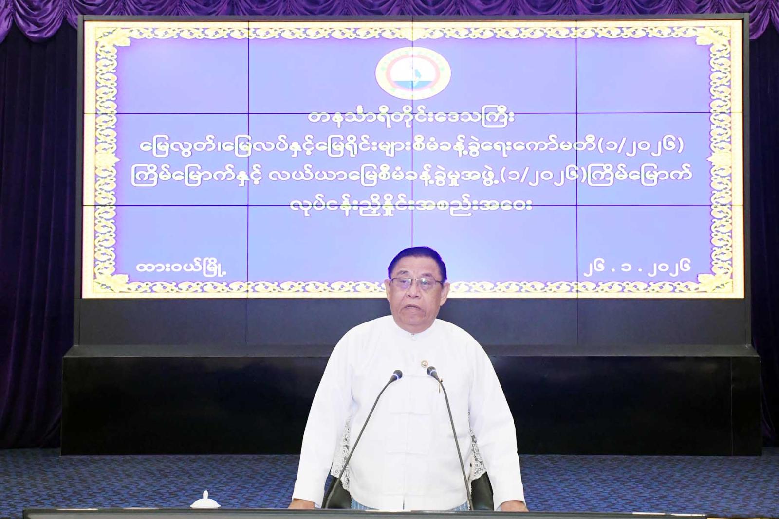 အစည်းအဝေးတွင် တိုင်းဒေသကြီး မြေလွတ်၊ မြေလပ်နှင့်မြေရိုင်းများ စီမံခန့်ခွဲရေးကော်မတီနှင့် လယ်ယာမြေစီမံခန့်ခွဲမှုအဖွဲ့ဥက္ကဋ္ဌ တိုင်းဒေသကြီးဝန်ကြီးချုပ်ဦးမြတ်ကိုက လယ်ယာမြေတွင် အခြားနည်းသုံးစွဲမှုများ ရှိသလို မြေလွတ်၊ မြေလပ်၊ မြေရိုင်းတွင် မွေးမြူရေးလုပ်ငန်းများ စသည်ဖြင့် ဒေသဖွံ့ဖြိုးတိုးတက်ရေးအတွက် ဆောင်ရွက်မည့်လုပ်ငန်းများပြားကြောင်း၊ လျှပ်စစ်ကဏ္ဍနှင့်ပတ်သက်၍ မြိတ်မြို့တွင် ဆိုလာလုပ်ငန်းဆောင်ရွက်ရန်ရှိကြောင်း၊ ထားဝယ်အနေဖြင့် ယခုဆောင်ရွက်ပေးနေသော လျှပ်စစ်မီးသည် ယူနစ်ဈေးနှုန်းသက်သာပြီး မြိတ်မြို့တွင်ယူနစ်ဈေးနှုန်း အနည်းငယ်မြင့်တက်နေသောကြောင့် တိုင်းဒေသကြီးအစိုးရအနေဖြင့် သော်လည်းကောင်း၊ ဒေသခံအနေဖြင့်သော်လည်းကောင်း စိတ်မကောင်းဖြစ်မိကြောင်း၊ မြိတ်မြို့တွင် ဆိုလာ ၂၀ မဂ္ဂါဝပ်ခင်းကျင်းကာ ယူနစ်ဈေးနှုန်းကျဆင်းအောင် ကြိုးစား လုပ်ကိုင်ဆောင်ရွက်လျက်ရှိပြီး ဖြစ်မြောက်အောင်လည်း ဆောင်ရွက်ပေးသွားမည်ဖြစ်ကြောင်း၊ တိုင်းဒေသကြီးအစိုးရအဖွဲ့အနေဖြင့် ဆိုလာလုပ်ငန်းနှင့်ပတ်သက်၍ သက်ဆိုင်ရာတာဝန်ရှိသူများနှင့်ညှိနှိုင်းကာ ဆောင်ရွက်ပေးလျက်ရှိပြီး ပုဇွန်ကန်လုပ်ငန်းများကိုလည်းဧက ၅၀ အောက် မွေးမြူနိုင်ရေး ဆောင်ရွက်ပေးသွားမည်ဖြစ်ကြောင်း၊ မြေယာများကိုအခြားနည်းသုံးစွဲသည့် နေရာ၌ ဒေသဖွံ့ဖြိုးတိုးတက် ရေးအတွက် ဆောင်ရွက်သည့် အခါအခက်အခဲဖြစ်နိုင်သောနေရာများအား ဂရုပြုဆောင်ရွက်ရန်လိုအပ်ကြောင်း၊ တိုင်းဒေသကြီးအတွင်းလယ်ယာမြေနှင့်ပတ်သက်၍ဒေသအတွင်းဖွံ့ဖြိုးတိုးတက်ရေးအတွက် တက်ရောက်လာကြသူများက ဝိုင်းဝန်းအကြံပြုဆွေးနွေးပေးကြရန် လိုအပ်ကြောင်းပြောကြားသည်။