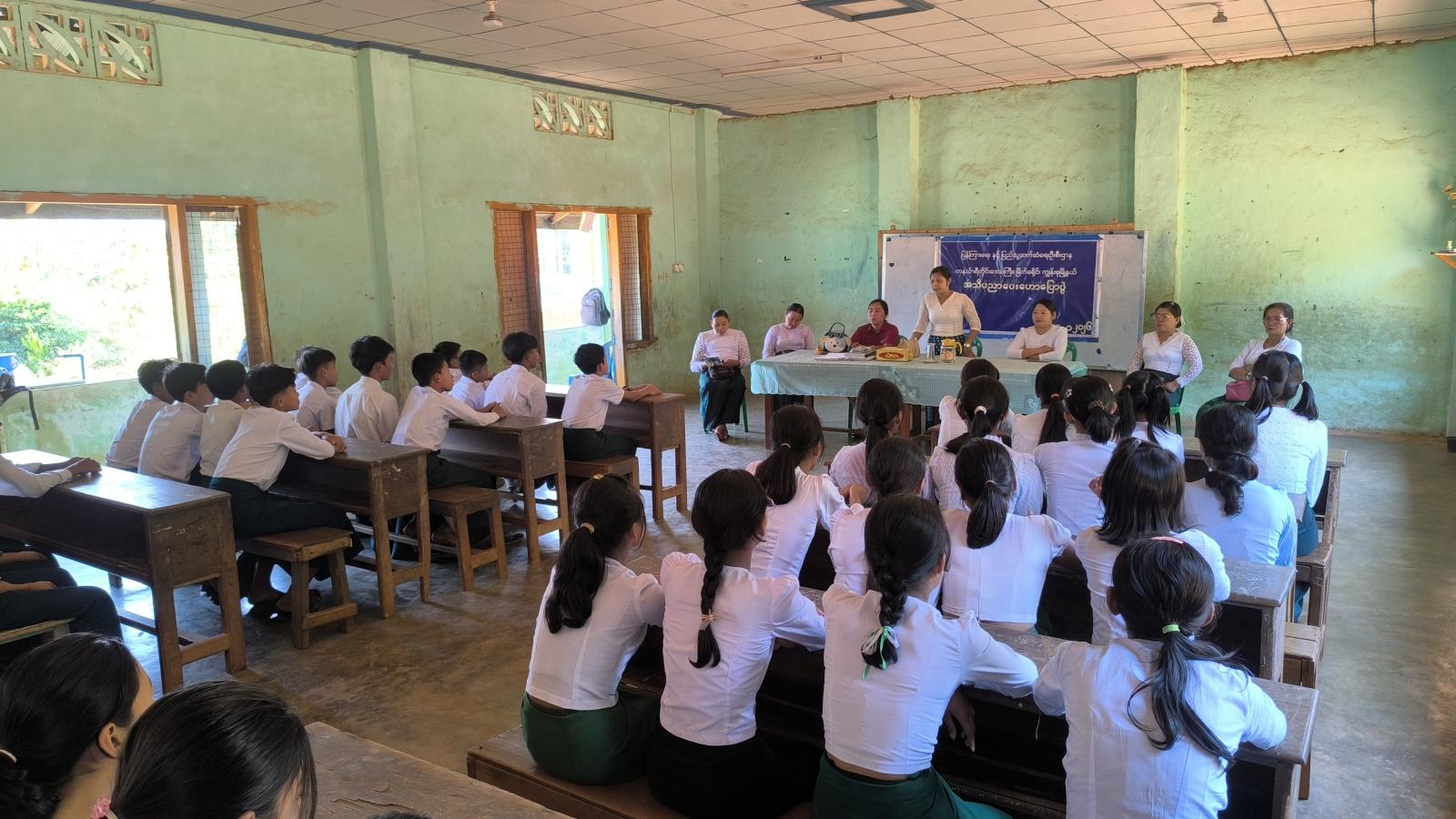 ဟောပြောပွဲတွင် ကျောင်းအုပ်ကြီး ဒေါ်တင်မီမီသော်က အမှာစကားပြောကြားခဲ့ပြီး မြို့နယ်ပြန်ကြားရေးနှင့်ပြည်သူ့ဆက်ဆံရေးဦးစီးဌာန ဦးစီးအရာရှိဒေါ်အေးသန္တာဖြိုးက ပြည်ထောင်စုနေ့ဖြစ်ပေါ်လာပုံသမိုင်းကြောင်းနှင့် အချိန်ကိုအကျိုးရှိစွာအသုံးချတတ်ရေးတို့ကို လည်းကောင်း၊ မြို့နယ်အားကစားမှူး ဒေါ်ပပထွန်းက အားကစားကဏ္ဍမြှင့်တင်ရေးနှင့် အားကစားသိပ္ပံတက်ရောက်သင်ကြားနိုင်ရန်တို့ကို အသိပညာပေးပြောကြားသည်။