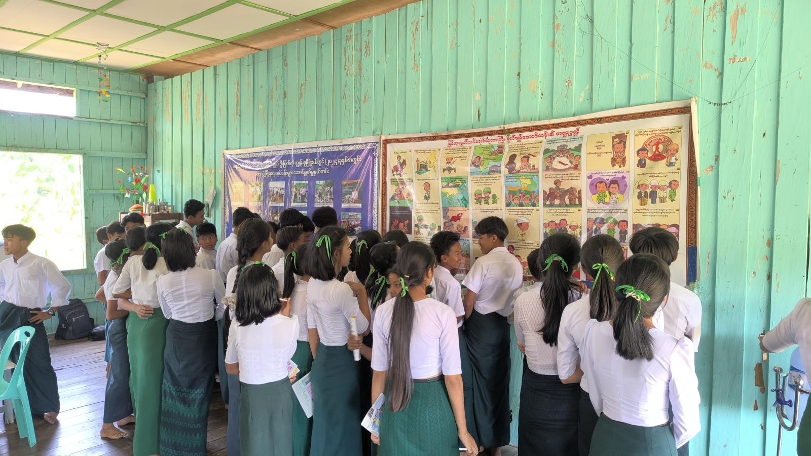 ထို့နောက် မြို့နယ်ပြန်ကြားရေးနှင့်ပြည်သူ့ဆက်ဆံရေးဦးစီးဌာန ဝန်ထမ်းများက ပြည်ထောင်စုနေ့ အသိပညာပေးလက်ကမ်းစာစောင်များ ဖြန့်ဝေခဲ့ပြီး အသိပညာပေး နံရံကပ်ဗီနိုင်းများခင်းကျင်းပြသခဲ့ရာ ကျောင်းသား/ကျောင်းသူများက စိတ်ပါဝင်စားစွာ ဖတ်ရှုလေ့လာခဲ့ကြကြောင်း သိရသည်။