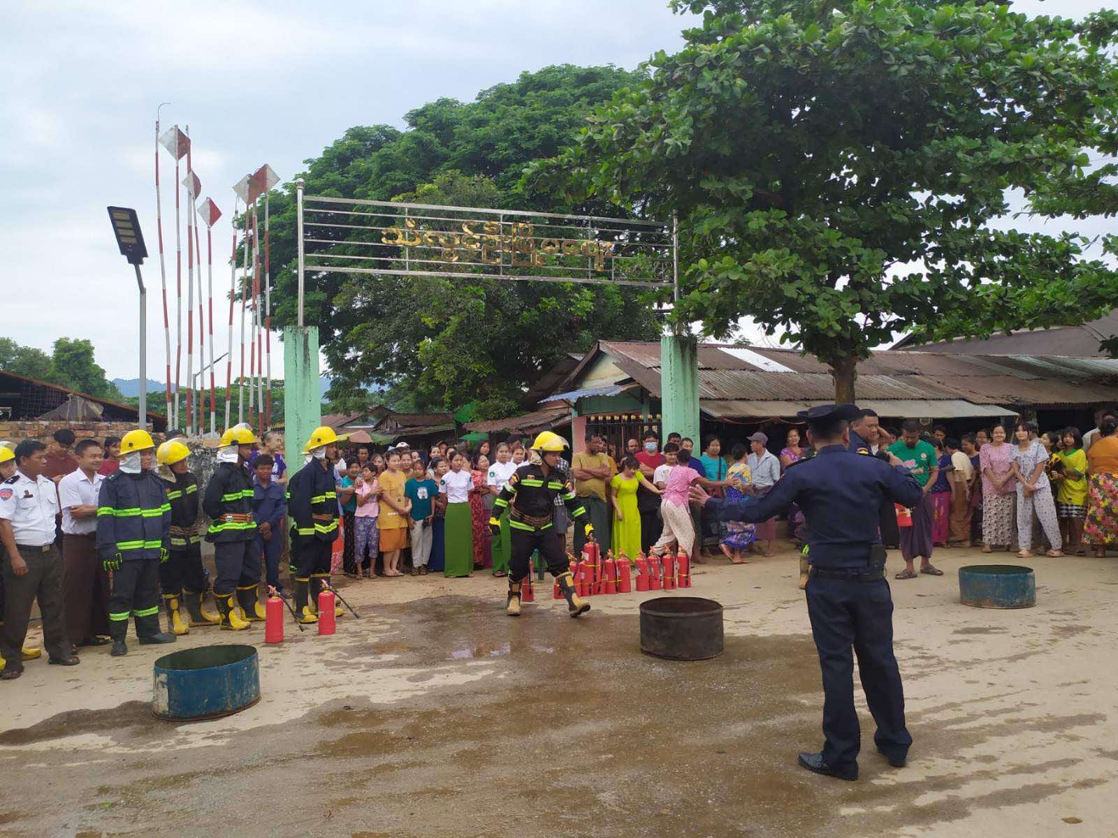 ကရင်ပြည်နယ်၊ ဖာပွန်ခရိုင်မီးသတ်ဦးစီးဌာနနှင့် ဌာနဆိုင်ရာများ ပူးပေါင်း၍ ဈေးသူဈေးသားများနှင့်အတူ သံလွင်ဦးမြို့မဈေး၌ ယနေ့နံနက် ၁၀ နာရီက မီးဘေးအန္တရာယ်ကြိုတင်ကာကွယ်ရေး ဇာတ်တိုက်လေ့ကျင့်မှု သရုပ်ပြပွဲကို ကျင်းပပြုလုပ်ခဲ့သည်။