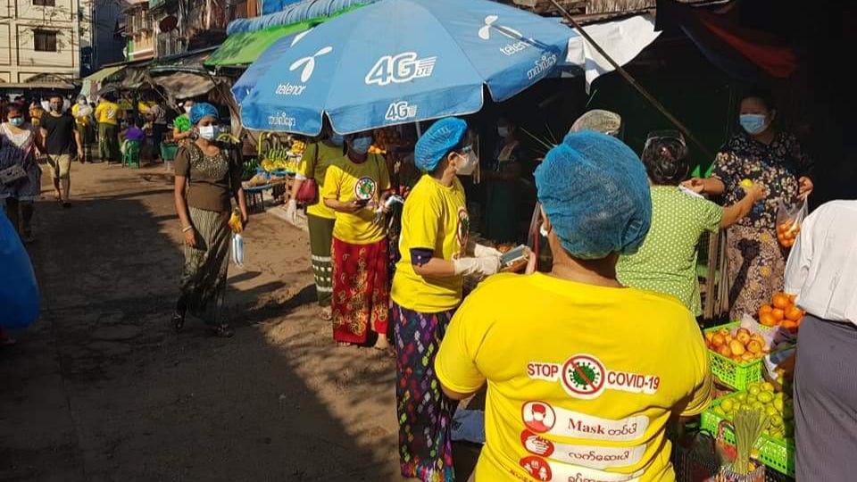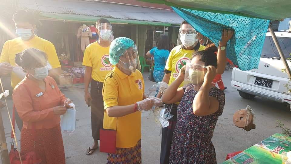 ရန်ကုန်တိုင်းဒေသကြီး၊ အနောက်ပိုင်းခရိုင်၊ မရမ်းကုန်းမြို့နယ်အတွင်းရှိ အမှတ်(၂၊၇၊၈) ရပ်ကွက်များရှိ စျေးများနှင့် လူစည်းကားရာ နေရာများတွင် ယနေ့နံနက် ၇၀:၀၀ နာရီအချိန်က ရန်ကုန်တိုင်းဒေသကြီး အစိုးရအဖွဲ့၏ လမ်းညွန်ချက်နှင့်အညီကိုဗစ်- ၁၉ရောဂါ ကာကွယ်ရေးနှင့် ပြည်သူများအားအသိ ပညာပေးလုပ်ငန်း ဖြစ်သည့်အဝါရောင် Mask Campaign လှုပ်ရှားမှု အနေဖြင့် Mask အခု၈၀၀၀ခု၊ faceshield ၁၀၀၀ ခု နှင့်အဝါရောင်တီရှပ်အထည် ၅၀၀ တို့ဖြန့်ဝေခြင်းများဆောင်ရွက်ခဲ့သည်။