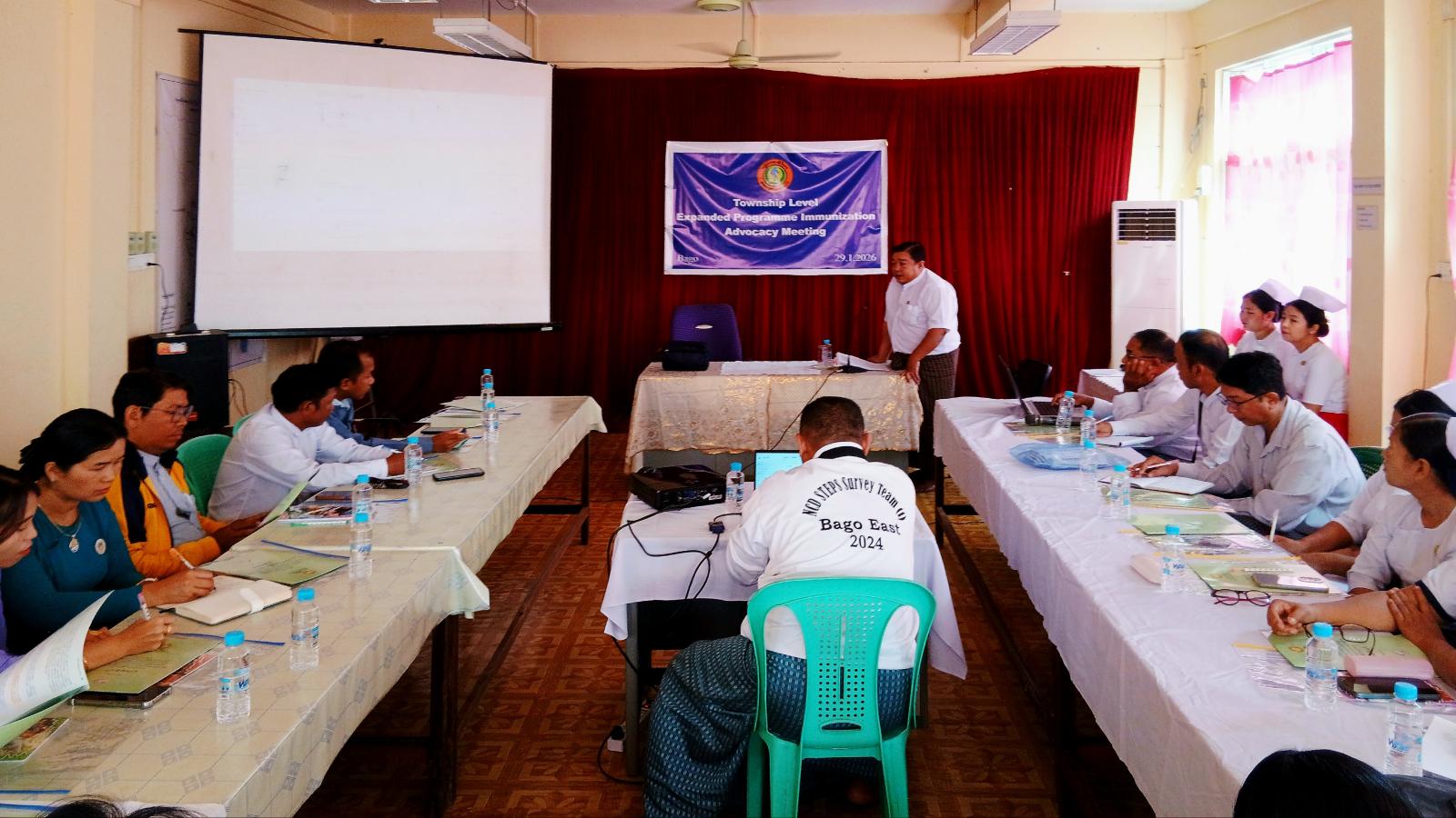 ပဲခူးတိုင်းဒေသကြီး၊ ပဲခူးခရိုင်၊ ပဲခူးမြို့နယ်တွင် ကာကွယ်ဆေးထိုးနှံတိုက်ကျွေးခြင်းလုပ်ငန်း လွှမ်းခြုံမှုပိုမိုမြင့်မားစေရေးနှင့် ကာကွယ်ဆေးလွှမ်းခြုံမှုအားနည်းသည့် ဒေသများတွင် ကာကွယ်ဆေးထိုးနှံတိုက်ကျွေးသည့် လုပ်ငန်းများပိုမိုဆောင်ရွက်နိုင်ရေးအတွက် အသိပေးဆွေးနွေးပွဲနှင့် လုပ်ငန်းညှိနှိုင်းအစည်းအဝေးကို ယမန်နေ့နံနက် ၁၀ နာရီအချိန်က ပဲခူးခရိုင် ပြည်သူ့ကျန်းမာရေးဦးစီးဌာန အစည်းအဝေးခန်းမ၌ ကျင်းပဆောင်ရွက်သည်။