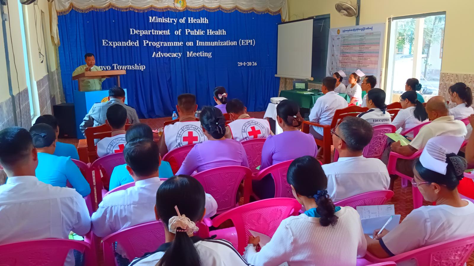 ပဲခူးတိုင်းဒေသကြီး၊ သာယာဝတီခရိုင်၊ မိုးညိုမြို့နယ်ကျန်းမာရေးဦးစီးဌာန အစည်းအဝေးခန်းမ၌ မြို့နယ်အတွင်း ကာကွယ်ဆေးထိုးလွှမ်းခြုံမှုပိုမိုမြင့်မားစေရေးနှင့် ကာကွယ်ဆေးလွှမ်းခြုံမှုအားနည်းသည့်ဒေသများတွင် ကာကွယ်ဆေးထိုးနှံတိုက်ကျွေးသည့်လုပ်ငန်းများ ပိုမိုဆောင်ရွက်နိုင်ရေးအတွက် အသိပေးဆွေးနွေးခြင်းနှင့် လုပ်ငန်းညှိ့နိူင်းအစည်းအဝေးကို ဇန်နဝါရီ ၂၉ ရက်၊ နံနက် ၁၀ နာရီက ပြုလုပ်ခဲ့သည်။