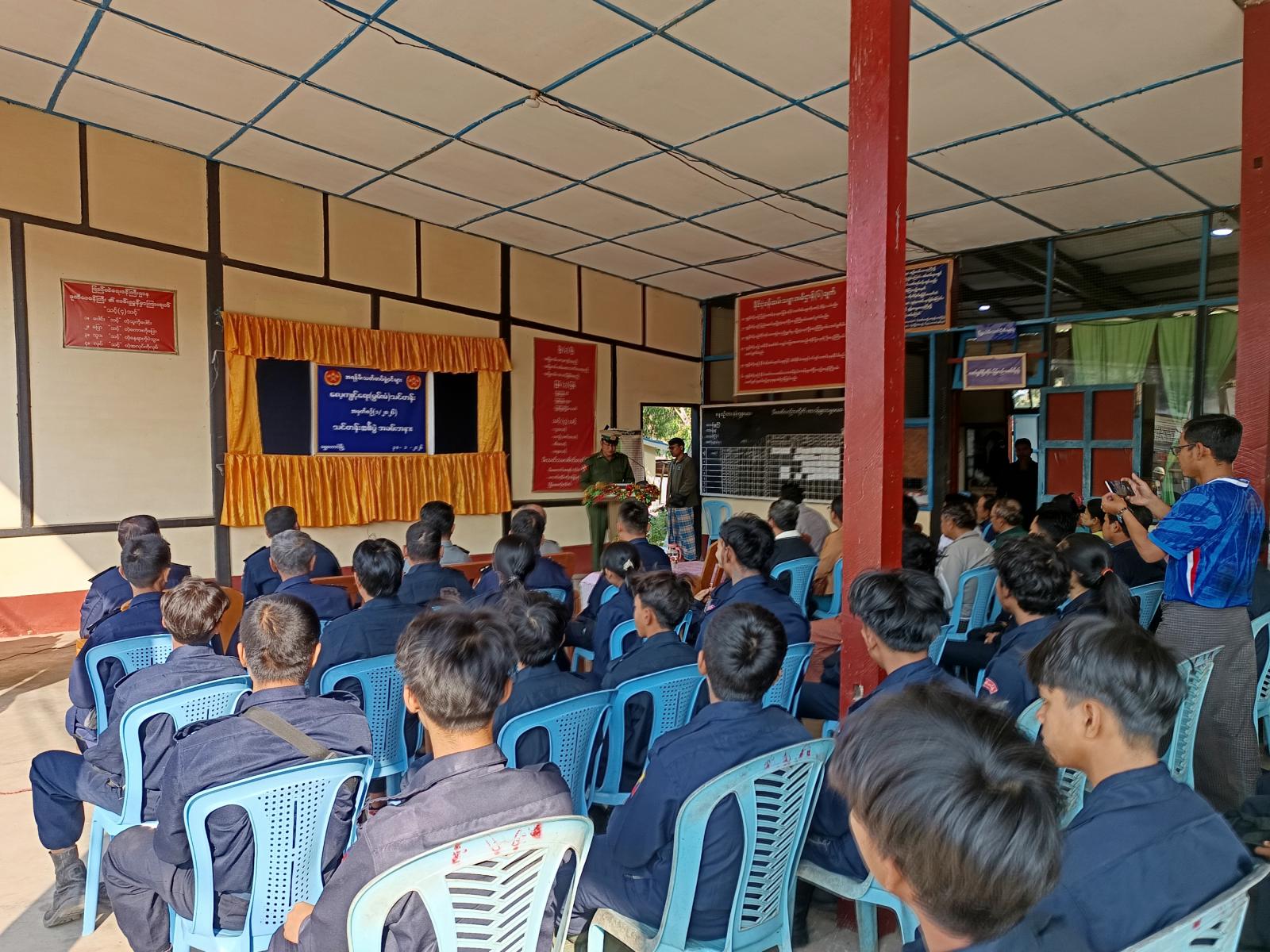 အခမ်းအနားတွင် မြို့နယ်စီမံအုပ်ချုပ်ရေးအဖွဲ့ဥက္ကဋ္ဌ(ကိုယ်စား) နယ်မြေလုံခြုံရေးအရာရှိ အမတ(၅၀၉)ဗိုလ်မှူး ရဲထွဋ်အောင်မှ သင်တန်းဆင်းမိန့်ခွန်းမြွက်ကြားခဲ့ပြီး သင်တန်းတက်ရောက်နိုင်ရေး ကြိုးပမ်းဆောင်ရွက်ပေးခဲ့ကြသည့် တပ်ရင်းရုံး/တပ်ခွဲ/တပ်စု၊ သီးသန့်မီးသတ်တပ်ဖွဲ့များနှင့် ပရဟိတအသင်းအဖွဲ့များအား ဂုဏ်ပြုမှတ်တမ်းလွှာများ ချီးမြှင့်ပေးခဲ့သည်။