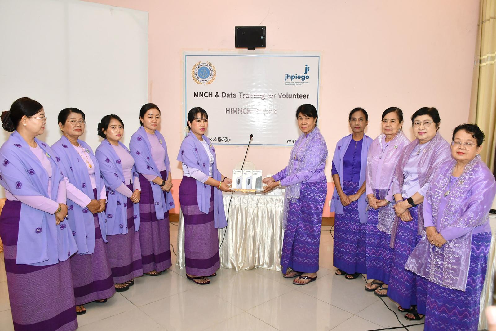 သင်တန်းကို မြန်မာနိုင်ငံမိခင်နှင့်ကလေးစောင့်ရှောက်ရေးအသင်းဥက္ကဋ္ဌ ပါမောက္ခဒေါက်တာစန်းစန်းမြင့်အောင်က အမှာစကားပြောကြား၍ ဖွင့်လှစ်ပေးပြီး စေတနာ့ဝန်ထမ်းအဖြစ် ဆောင်ရွက်မည့် သင်တန်းသူများအတွက် စီမံချက်လုပ်ငန်းဆောင်ရွက်ရန် အထောက်အကူပြု ဖုန်းများအား ပေးအပ်ရာ တိုင်းဒေသကြီးမိခင်နှင့်ကလေးစောင့်ရှောက်မှုကြီးကြပ်ရေးအဖွဲ့ဥက္ကဋ္ဌ ဒေါ်နန်းစောဥမ္မာဝင်း က လက်ခံရယူပြီး သင်တန်းစတင်ခဲ့သည်။
