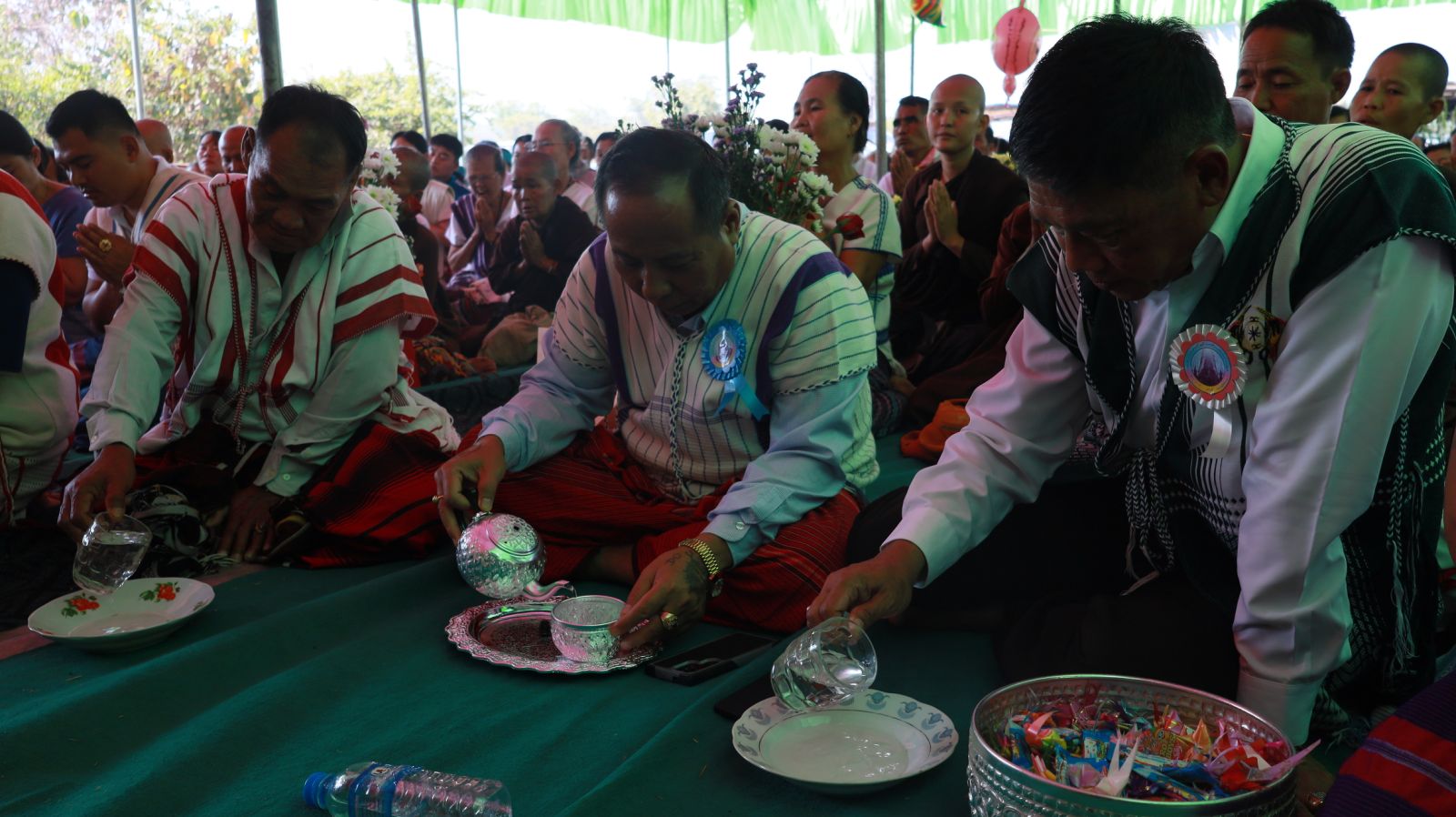 အဆိုပါထီးတော်တင်လှူခြင်း အခမ်းအနားတွင် ဒုတိယမြိုင်ကြီးငူဆရာတော်ဘဒ္ဒန္တ ဉာဏိကထံမှ ငါးပါးသီလနှင့် သာဓုအနုမောဒနာတရားနာယူပြီး ဆရာတော်သံဃာတော်အရှင်သူမြတ်တို့မှ ရွတ်ဖတ်သရဇ္ဈာယ်သော မေတ္တာသုတ်တရားတော်အား နာယူဆောက်တည်ခဲ့ကြောင်း သိရသည်.