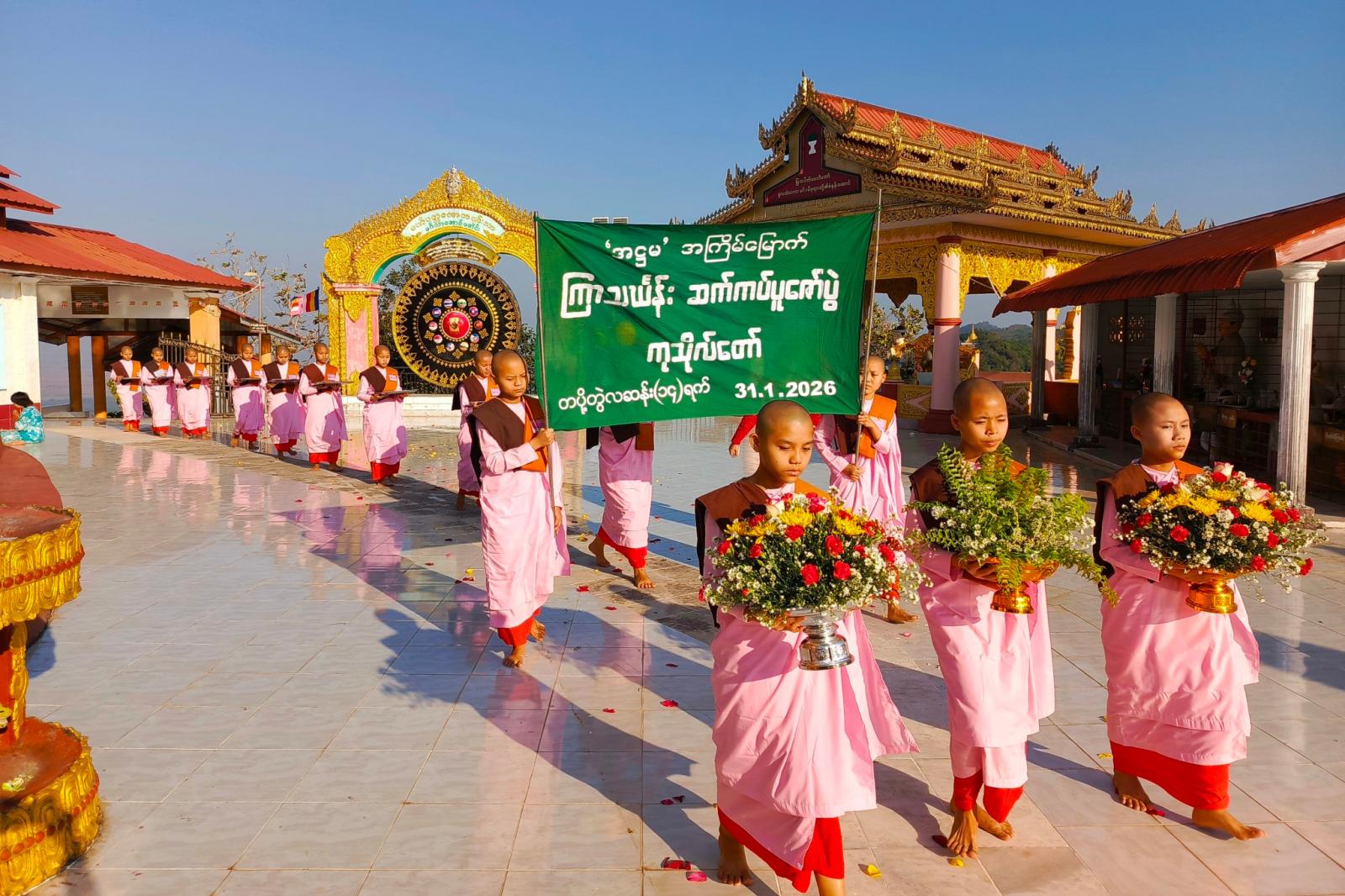 မွန်ပြည်နယ်၊ သထုံမြို့၊ သိင်္ဂနိတ်တောင်ထိပ်ရှိ ဆံတော်ရှင်မြသပိတ်စေတီတော်မြတ်ကြီး၏ (၆၈) ကြိမ်မြောက် ဗုဒ္ဓပူဇနိယပွဲတော် အထိမ်းအမှတ်အဖြစ် လိပ်အင်းရပ်ကွက်ရှိ ပဉ္စဂီရိ ချမ်းမြေ့စည် လောကီလောကုတ္တရာ ပညာသင်ကြားရေး သီလရှင်ကျောင်းမှ သီလရှင် ဆရာကြီး၊ ဆရာလေးများ၏ (အဋ္ဌမ)အကြိမ်မြောက် ကြာသင်္ကန်းဆက်ကပ်ပူဇော်ပွဲကို ဇန်နဝါရီ ၃၁ ရက် နံနက်ပိုင်းက အဆိုပါစေတီတော်မြတ်ကြီး ရင်ပြင်တော်၌ ကျင်းပပြုလုပ်သည်။