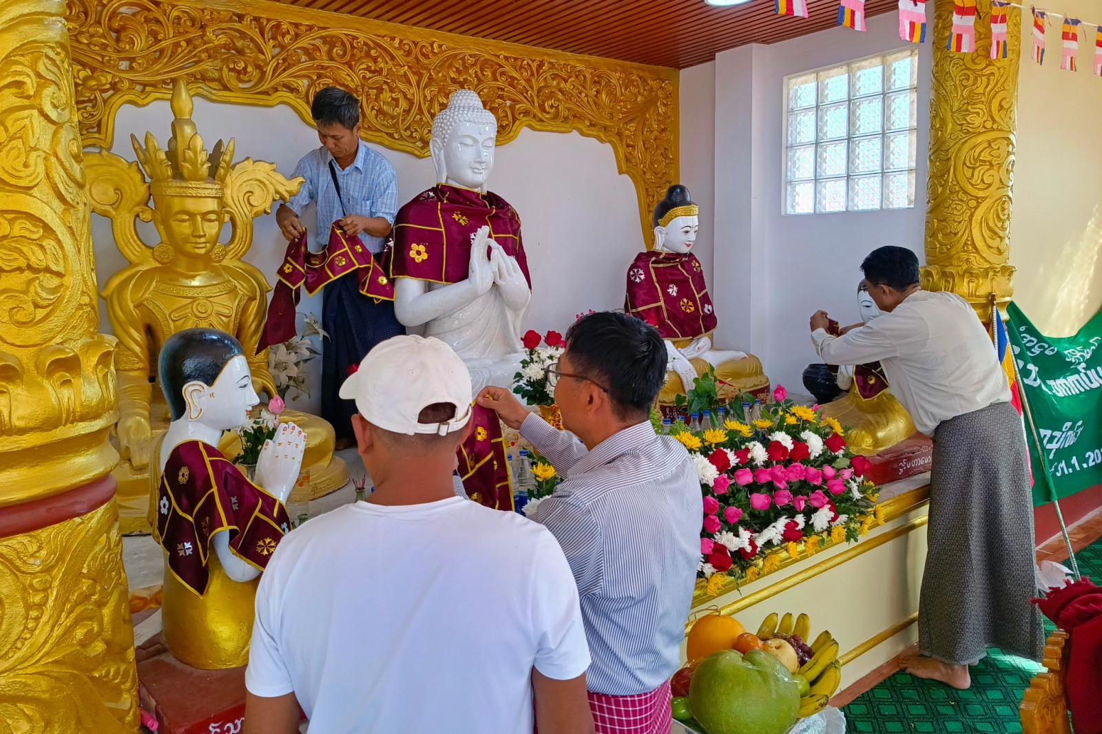 ယင်းနောက် သီလရှင်ဆရာကြီး၊ ဆရာလေးများ၊ လူမှုကူညီရေးပရဟိတအဖွဲ့များက ကြာသင်္ကန်းတော်အား စေတီတော်မြတ်ကြီးအထက်ဆီသို့ တင်လှူပူဇော်ကြပြီး မြသပိတ်စေတီတော်ဘဏ္ဍာတော်ထိန်းဂေါပကအဖွဲ့ဝင်များ၊ အလှူရှင်များနှင့် တာဝန်ရှိသူတို့က ဝတ်အသီးသီးတို့ရှိ ရုပ်ပွားတော်မြတ်တို့အား ကြာသင်္ကန်းတော်များ ကပ်လှူပူဇော်ကြကာ လှူဒါန်းမှုတို့အား ရေစက်သွန်းချ အမျှဝေပေးခဲ့ကြကြောင်း သိရသည်။