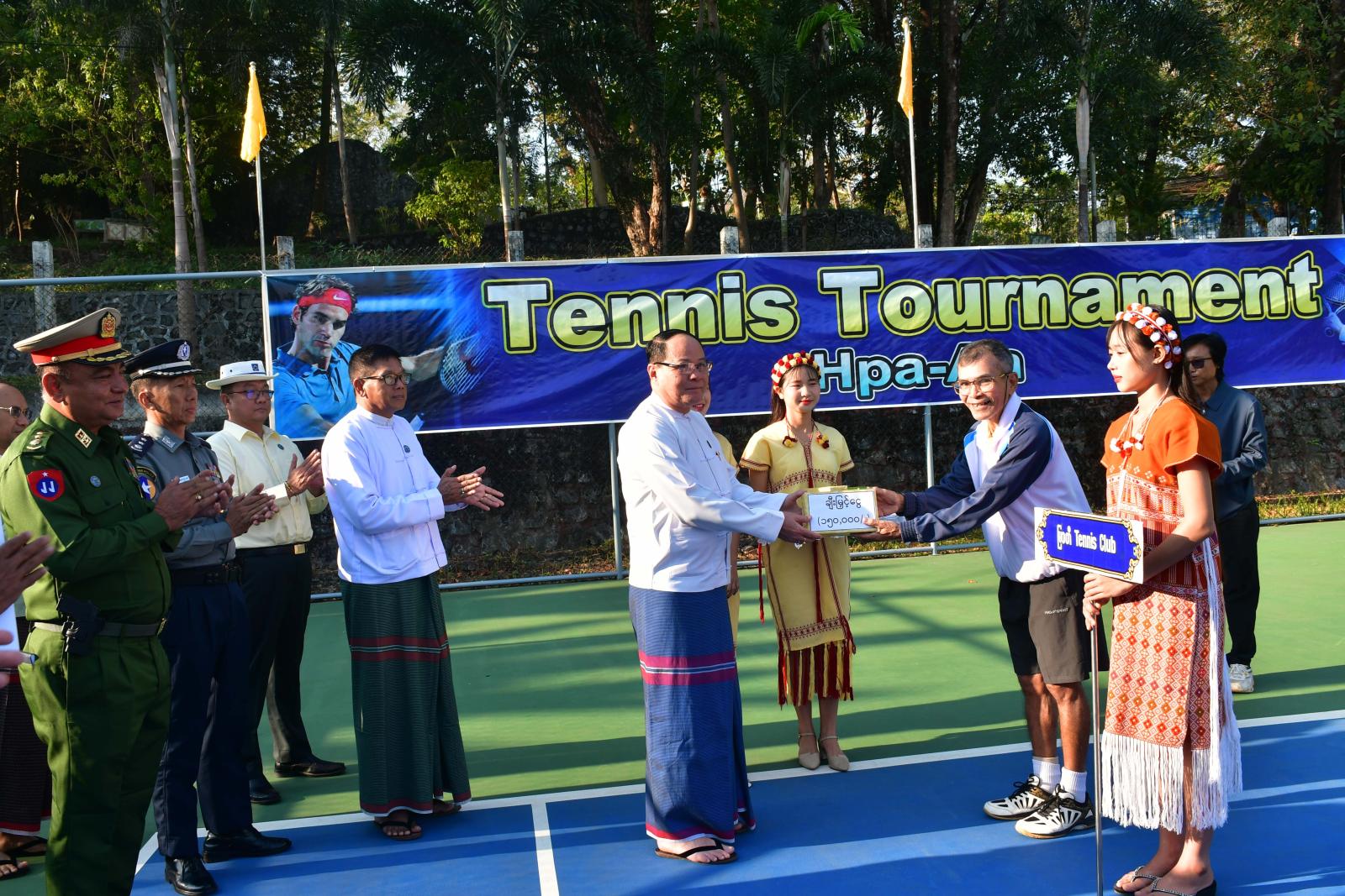 အဆိုပါတင်းနစ်ပြိုင်ပွဲသို့ ဘားအံမြို့နယ်၊ မြဝတီမြို့နယ်၊ မော်လမြိုင်မြို့နယ်၊ သထုံမြို့နယ်၊ သံဖြူဇရပ်မြို့နယ် တို့နယ်တို့မှ အမျိုးသား/အမျိုးသမီး တင်းနစ်အသင်း (၆) သင်း၊ အားကစားသမား ၄၅ ဦးဝင်ရောက်ယှဉ်ပြိုင်ကြပြီး ပြည်နယ်ဝန်ကြီးချုပ် ဦးစောမြင့်ဦးက တစ်မျိုးသားလုံးသက်ရှည် ကျန်းမာစေရေးအတွက် အားကစားသည် အရေးပါသည့် ကဏ္ဍတစ်ရပ်ဖြစ်ပြီး အားကစားသမား ကောင်းတစ်ယောက်၏ အပြုအမူစိတ်နေသဘောထားကို အခြေခံ၍ ပြိုင်ပွဲစည်းမျဉ်း စည်းကမ်းနှင့်ဥပဒေများကို လေးစားလိုက်နာကာ ကြိုးစားယှဉ်ပြိုင်ကစားကြရန် တိုက်တွန်းပြောကြားပြီး ပြိုင်ပွဲအား ဖွင့်လှစ်ပေးသည်။