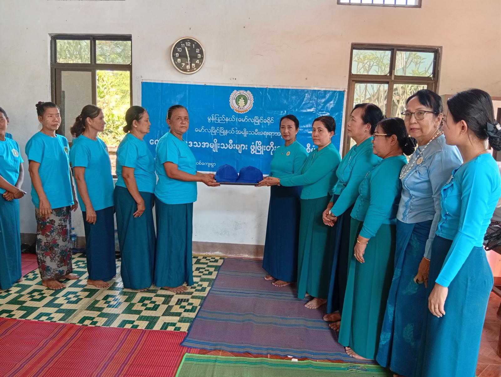 ထိုနောက် ပြည်နယ် အမျိုးသမီရေးရာအဖွဲ့ ဥက္ကဋ္ဌ ဒေါ်အိနန္ဒာဝင်း၊ ခရိုင် အမျိုးသမီရေးရာအဖွဲ့ ဥက္ကဋ္ဌ ဒေါ်ယဉ်ယဉ်ခိုင်၊ မြို့နယ်အမျိုးသမီရေးရာအဖွဲ့ ဥက္ကဋ္ဌ ဒေါ်မြင့်မြင့်သန်း နှင့်အဖွဲ့ဝင်များက မင်းရွာကျေးရွာ စာကြည့်တိုက်အတွက် စာအုပ်စာစောင်များ ပေးအပ်လှူဒါန်း၍ စာလာရောက်ဖတ်ရှုကြသည့် ကလေးငယ်များအား အချိုရည်နှင့်မုန့်များ ပေးအပ်ခဲ့သည်။ ဆက်လက်၍ အမျိုးသမီးများ ဘဝဖွံ့ဖြိုးတိုးတက်ရေးအတွက် ဝင်ငွေတိုးချေးငွေဖြင့် စိုက်ပျိုးထားသော သီးနှံပင်များအား လိုက်လံကြည့်ရှု၍ ချေးငွေအကျေ ပေးဆပ်ပြီးသည့် အမျိုးသမီးများအား ထပ်မံ၍ ဝင်ငွေတိုးချေးငွေများ ပြန်လည်ထုတ်ချေးပေးခဲ့ပြီး ဆင်းရဲနွမ်းပါးသည့် အမျိုးသမီးများ စားဝတ်နေရေး အဆင်ပြေချောမွေ့စေရေးအတွက် စားသောက်ကုန်ပစ္စည်းများ လှူဒါန်းပေးခဲ့ကြောင်း သိရသည်။