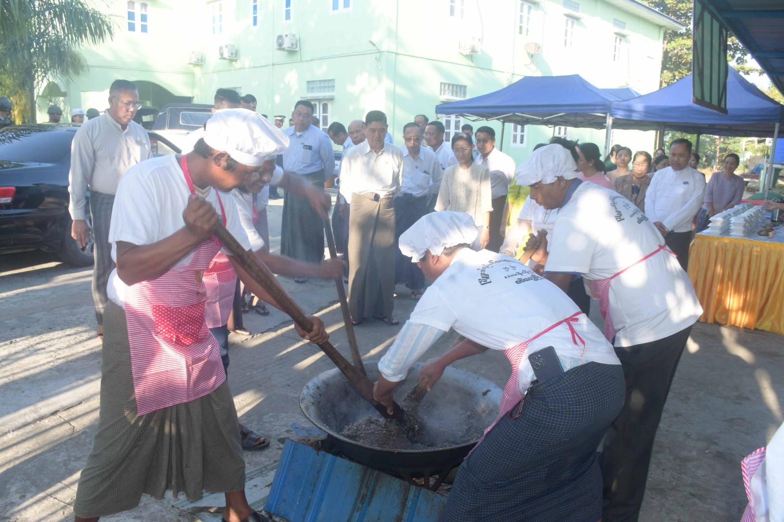 ရခိုင်ပြည်နယ်အစိုးရအဖွဲ့၏ ကြီးကြပ်မှုဖြင့် တပို့တွဲလ စုပေါင်းထမနဲထိုးပွဲတော်ကို ယမန်နေ့ ညနေပိုင်းက စစ်တွေမြို့ပေါ်ရှိ ဌာနဆိုင်ရာရုံးများ၌ ဝန်ထမ်းများ စုပေါင်းထမနဲထိုးနေမှုများကို ရခိုင်ပြည်နယ်ဝန်ကြီးချုပ် ဦးထိန်လင်းနှင့် ဇနီး၊ ပြည်နယ်အစိုးရအဖွဲ့ဝင်များနှင့် ဇနီးများ၊ ဌာနဆိုင်ရာတာဝန်ရှိသူများနှင့်အတူ လှည့်လည်ကြည့်ရှုအားပေးခဲ့ကြသည်။