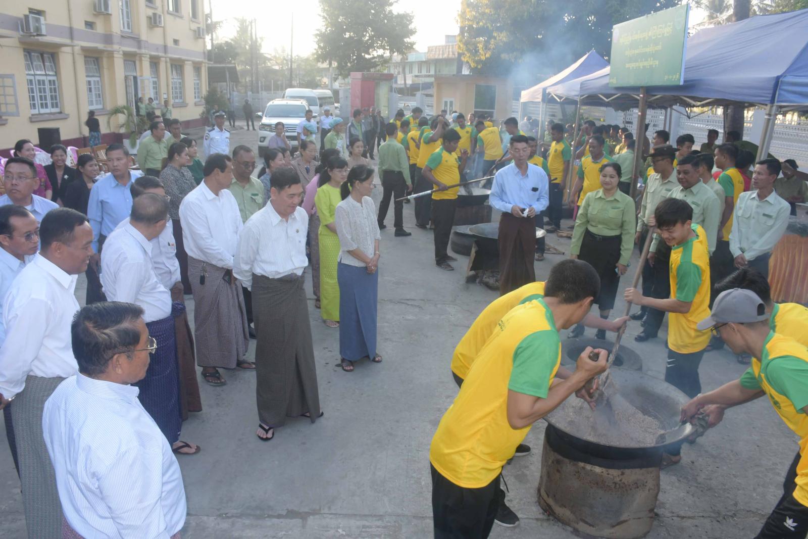 ဦးစွာ ပြည်နယ်ဝန်ကြီးချုပ်နှင့်အဖွဲ့သည် ပြည်နယ်မီးသတ်ဦးစီးဌာနသို့သွားရောက်ပြီး ဝန်ထမ်းများ ပျော်ပျော်ပါးပါး စုပေါင်းထမနဲထိုးနေမှုကို လှည့်လည်ကြည့်ရှုအားပေးခဲ့ကြသည်။ ယင်းနောက် ပြည်နယ်ဝန်ကြီးချုပ် ဦးထိန်လင်းက တပို့တွဲလထမနဲထိုးပွဲဟုဆိုသည့်အတိုင်း တပို့တွဲလတွင် ထမနဲသည် ရာသီစာဖြစ်၍ ယခုကဲ့သို့ ပြုလုပ်၍ရရှိလာသော ထမနဲများကို တပို့တွဲလပြည့်နေ့တွင် မြန်မာတို့၏ ထုံးတမ်းစဉ်လာအတိုင်း မြတ်စွာဘုရားအား ဦးဦးဖျားဖျား ကပ်လှူပူဇော်ကြရန်၊ သံဃာတော်များအား ဆက်ကပ်လှူဒါန်းကြရန်၊ ဘိုးဘွားဆရာသမားများနှင့် အိမ်နီးနားချင်းများ၊ မိတ်ဆွေအပေါင်းအသင်းများအား လှူဒါန်းဝေငှကျွေးမွေးကြရန်၊ တစ်ဦးနှင့် တစ်ဦး ပိုမိုစည်းလုံးညီညွတ်စွာဖြင့် အချင်းချင်း ရိုင်းပင်းကူညီစိတ် ပူးပေါင်းဆောင်ရွက်တတ်သည့် စိတ်ဓာတ်များ ရှင်သန်စေရန်အတွက် ရည်ရွယ်ကျင်းပပေးခြင်းဖြစ်ကြောင်း ပြောကြားသည်။
