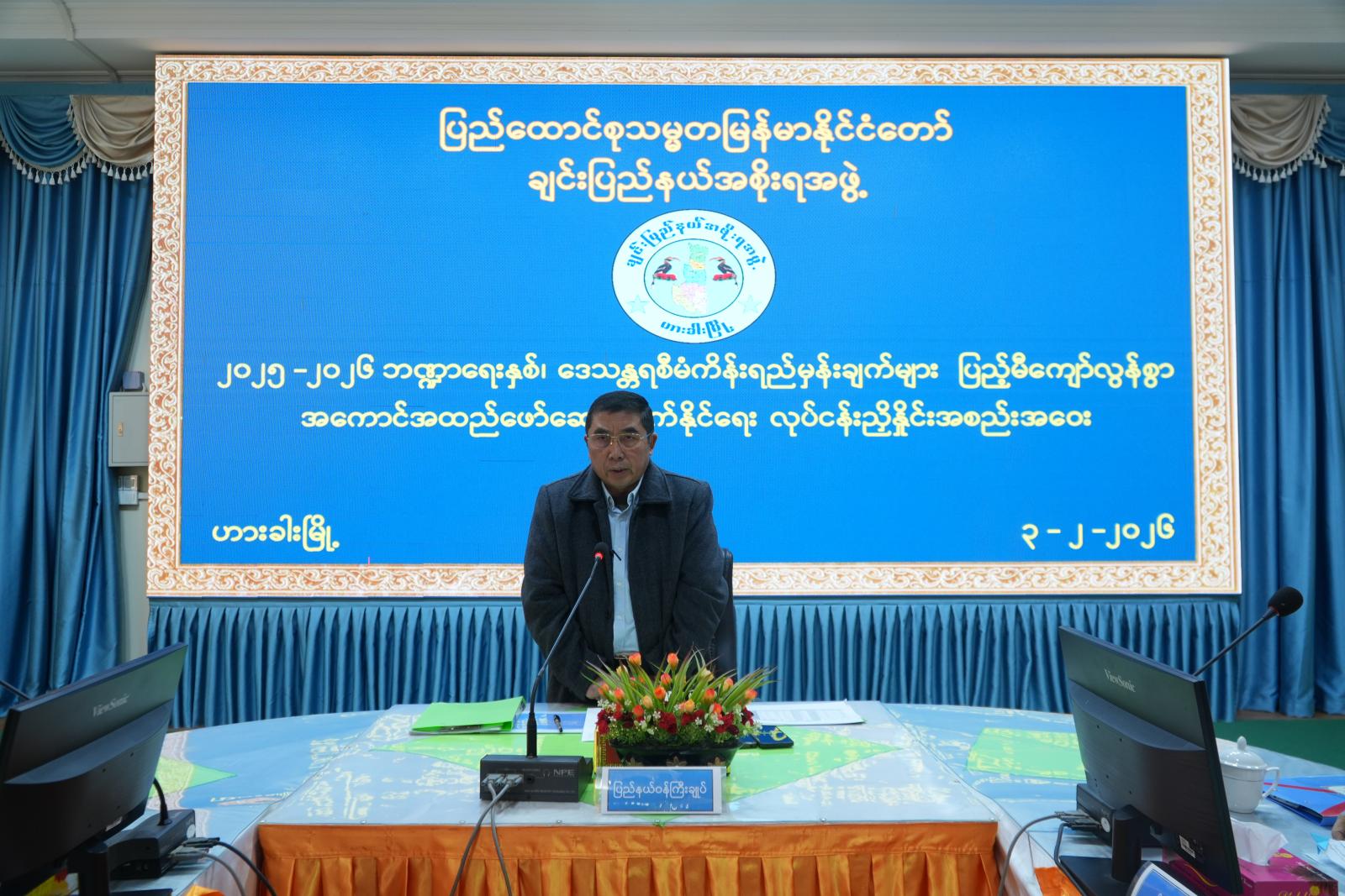 ယင်းနောက် ပြည်နယ်စီးပွားရေးရာဝန်ကြီး ဒေါက်တာလျန်ဇခုပ်က မြန်မာနိုင်ငံတွင် ဒေသန္တရစီမံကိန်းက ဒေသဖွံ့ဖြိုးရေးနှင့် ဝန်ဆောင်မှုများ ဖွံ့ဖြိုးတိုးတက်ရေးအတွက် အရေးပါသည့် လုပ်ငန်းစဉ်များဖြစ်ကြောင်း၊ ဒေသန္တရစီမံကိန်းများ၏ ရည်ရွယ်ချက်များမှာ ဒေသအတွင်း လိုအပ်ချက်များကို အခြေခံသည့် ဖွံ့ဖြိုးရေးဦးစားပေးသည့် သတ်မှတ်ချက်များ၊ ပြည်သူပါဝင်မှုမြှင့်တင်ခြင်းဖြင့် တည်ဆောက်နေသည့် ဒီမိုကရေစီလုပ်ငန်းစဉ်များ အားကောင်းလာစေရန်နှင့် ကျေးရွာ၊ မြို့နယ်၊ ခရိုင် အဆင့်များတွင် ဝန်ဆောင်မှုများ ပိုမိုရရှိစေရန်တို့ဖြစ်ကြောင်း၊ ဒေသန္တရာစီမံကိန်းတွင် လမ်း၊ တံတားများပြုပြင်တည်ဆောက်ခြင်း၊ သန့်ရှင်းရေသွယ်ယူခြင်းနှင့်၊ ကျန်းမာရေးစောင့်ရှောက်မှုစင်တာများ တိုးချဲ့ဖွင့်လှစ်ခြင်း စသည့်အချက်များပါဝင်သည့် အခြေခံအဆောက်အဦများ ဖွံ့ဖြိုးရေးလုပ်ငန်း၊ ရေးသွင်းစိုက်ပျိုးရေးစနစ်၊ ကုန်းမြင့်လယ်ယာစနစ်တိုးချဲ့ခြင်း၊ စိုက်ပျိုးရေးအထွက်တိုးနည်းပညာများ ပံ့ပိုးခြင်း စသည့်အချက်များပါဝင်သည့် စိုက်ပျိုးရေးနှင့်ကျေးလက်ဖွံ့ဖြိုးရေးလုပ်ငန်း၊ ကျောင်းအဆောက်အဦ အသစ်များတည်ဆောက်ခြင်း၊ ဆရာ၊ ဆရာမများ၏ အရည်အသွေးမြှင့်တင်ခြင်း၊ ပညာရေးနှင့် ပတ်သက်သည့်ပစ္စည်းများ ထောက်ပံ့ပေးခြင်း စသည့်အချက်များပါဝင်သည့် ပညာရေး ဆိုင်ရာစီမံကိန်းများနှင့် စွန့်ပစ်ပစ္စည်းများ စနစ်တကျ စီမံခန့်ခွဲခြင်း၊ သစ်တောပြုန်းတီးမှု ကာကွယ်ခြင်း၊ ရေအရင်းအမြစ်များ ထိန်းသိမ်းကာကွယ်ခြင်း စသည့်အချက်များပါဝင်သည့် ပတ်ဝန်းကျင် ထိန်းသိမ်းခြင်းလုပ်ငန်းများပါဝင်ကြောင်းနှင့် ဒေသန္တရစီမံကိန်းရည်မှန်းချက်များ ပြည့်မီကျော်လွန်စွာ အကောင်အထည်ဖော် ဆောင်ရွက်နိုင်ရေးနှင့် ပတ်သက်၍ ဆွေးနွေးတင်ပြသည်။