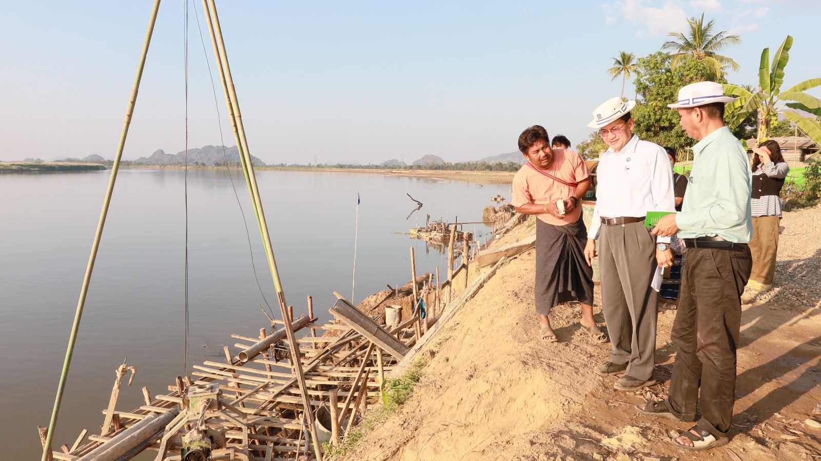 အမျိုးသားသဘာဝဘေးအန္တရာယ်ဆိုင်ရာစီမံခန့်ခဲ့မှုကော်မတီ၏ ခွင့်ပြုရန်ပုံငွေဖြင့် ကရင်ပြည်နယ်ရေအရင်းမြစ်နှင့် မြစ်ချောင်းများဖွံ့ဖြိုးတိုးတက်ရေးဦးစီးဌာနမှ ကြီးကြပ်ဆောင်ရွက်လျက်ရှိသည့် ကရင် ပြည်နယ် ဘားအံမြို့နယ် ကော့လှိုက်ကျေးရွာရှိ သံလွင်မြစ်ကမ်းပြိုကာကွယ်ရေးလုပ်ငန်း ဘိုးပိုင်အခြေပြု ကျောက်စီမြေထိန်းနံရံ အလျားပေအရှည် ပေ (၁၀၀၀) တည်ဆောက်ခြင်းလုပ်ငန်းဆောင်ရွက်နေမှုကို ပြည်နယ်လမ်းပန်းဆက်သွယ်ရေးဝန်ကြီး ဦးညီညီဇော်က ယမန်နေ့ ညနေပိုင်းက သွားရောက်ကြည့်ရှုစစ်ဆေးသည်။