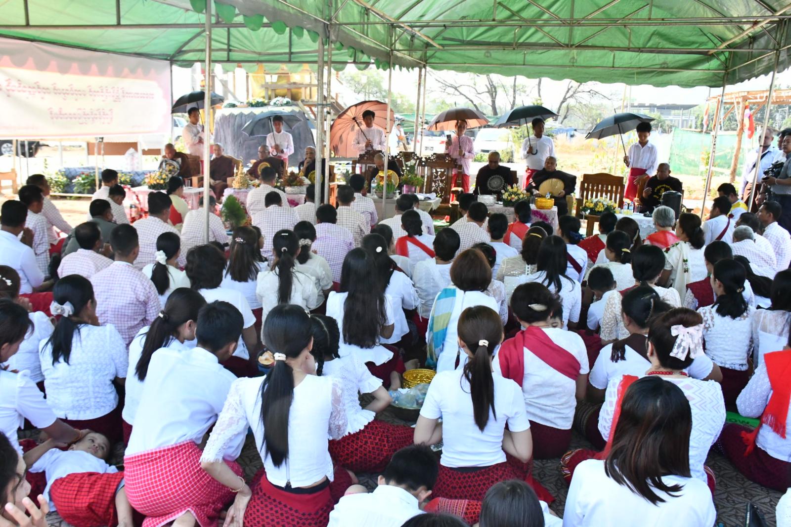 မွန်ပြည်နယ်၊ မော်လမြိုင်မြို့၊ မင်းရွာကျေးရွာ၊ မွန်ပြည်နယ် တိုင်းရင်းသားယဉ်ကျေးမှု စင်တာအတွင်းရှိ (၇၉)ကြိမ်မြောက် မွန်အမျိုးသားနေ့ အထိမ်းအမှတ် ဆံတော်ရှင် ကျိုက်ထီးရိုး စေတီတော်မြတ်ကြီး ပုံတူစေတီတော်မြတ် ရွှေထီးတော်တင်လှူပူဇော်ခြင်း၊ ဗုဒ္ဓါဘိသေကအနေကဇာတင် မင်္ဂလာနှင့် မွန်ရိုးရာအိမ်သစ်တက် မင်္ဂလာအခမ်းအနားကို မွန်ပြည်နယ် တိုင်းရင်းသားယဉ်ကျေးမှု စင်တာ၌ ကျင်းပပြုလုပ်ရာ ဦးစွာအခမ်းအနားကို နမောတဿ (၃) ကြိမ်ရွတ်ဆို ဘုရားကန်တော့၍ ဖွင့်လှစ်ခဲ့ပြီး မော်လမြိုင်မြို့၊ မြစေတီစာသင်တိုက်ကြီး၏ ဦးစီးပဓာနနာယကဆရာတော် အဘိဓဇမဟာရဌဂုရု၊ အဂ္ဂမဟာပဏ္ဍိတ ဘဒ္ဒန္တဝိမလဗုဒ္ဓိထံမှ သီလတော်မြတ်များ ခံယူ၍ ဆရာတော်၊ သံဃာတော် အရှင်သူမြတ်များ ရွတ်ပွားချီးမြှင့်တော်မူသော မေတ္တသုတ် အစရှိသော ပရိတ်တရားတော်များ နာယူကြည်ညိုခဲ့ကြသည်။