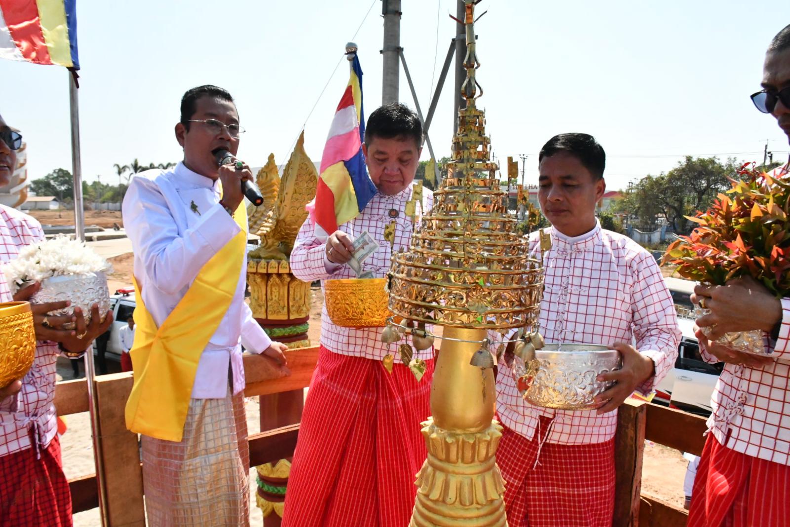 ထို့နောက် ပြည်နယ်ဝန်ကြီးချုပ်နှင့် တာဝန်ရှိသူများ၊ အလှူရှင်များက စေတီတော်မြတ်ကြီးထံ တင်လှူပူဇော်မည့် စိန်ဖူးတော်၊ ရွှေထီးတော်တို့အား ဆရာတော်ကြီးများထံ ဆက်ကပ် လှူဒါန်းပူဇော်ခဲ့ပြီး ဆရာတော်အရှင်သူမြတ်များထံသို့ လှူဖွယ်ဝတ္ထုပစ္စည်းများ ဆက်ကပ်လှူဒါန်းခဲ့ကြကာ လှူဒါန်းမှုအစုစုတို့အတွက် အနုမောဒနာ တရားနာယူကြည်ညိုပြီး ရေစက်သွန်းချ အမျှပေးဝေခဲ့ကြသည်။