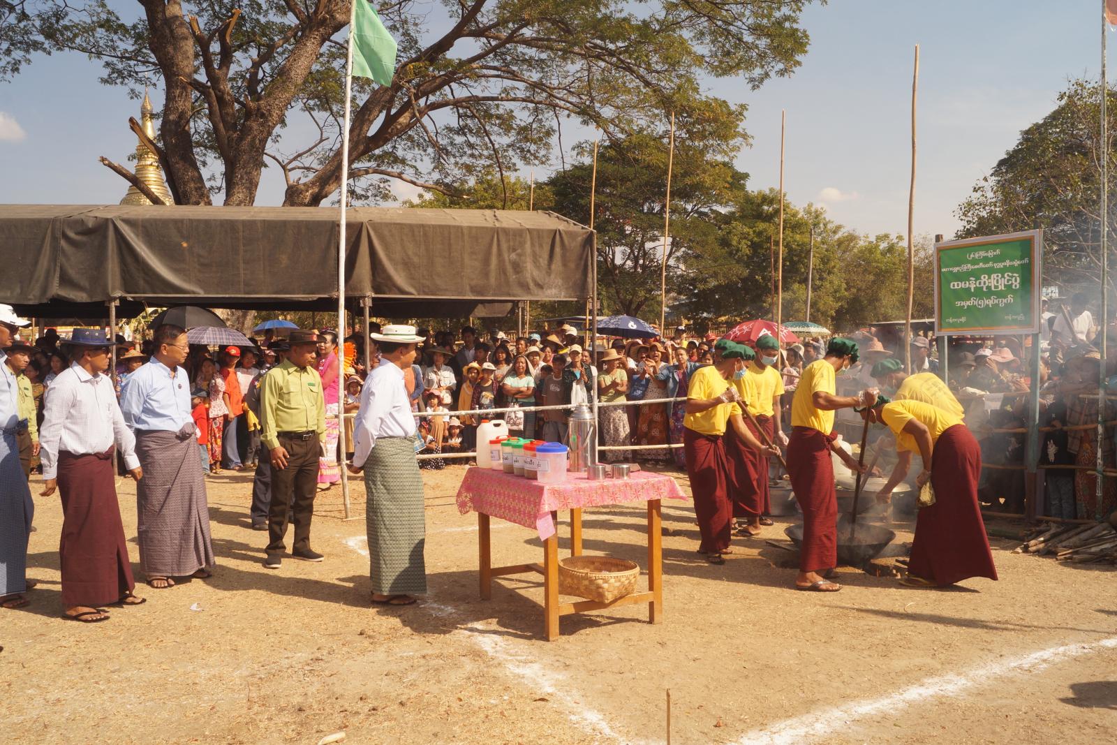 ရှေးဦးစွာ ထမနဲထိုးပြိုင်ပွဲတွင် ပါဝင်ယှဥ်ပြိုင်ကြမည့်အသင်းများ၊ အမှတ်ပေးဒိုင်များ၊ အမှတ်ပေး ဒိုင်ချုပ်များနှင့် မိတ်ဆက်ပေးပြီး အမှတ်ပေးဒိုင်များက ပြိုင်ပွဲဝင်အသင်းများ၏ ပြင်ဆင်ထားရှိမှုအား အကဲဖြတ်စစ်ဆေးပြီး စတင်ယှဥ်ပြိုင်ကြရာ တိုင်းဒေသကြီး ဝန်ကြီးချုပ်နှင့်တာဝန်ရှိသူများက မြို့ပေါ်ရပ်ကွက်များ၊ ဌာနဆိုင်ရာ အမျိုးသား ၊အမျိုးသမီးအသင်း (၁၂)သင်း၏ တပျော်တပါး ထမနဲထိုးပြိုင်ပွဲဝင်နေမှုအား လိုက်လံကြည့်ရှုအားပေးကြပြီး ထမနဲထိုးပြိုင်ပွဲဝင်အသင်းများအား ရင်းရင်းနှီးနှီး နှုတ်ဆက်ခဲ့သည်။