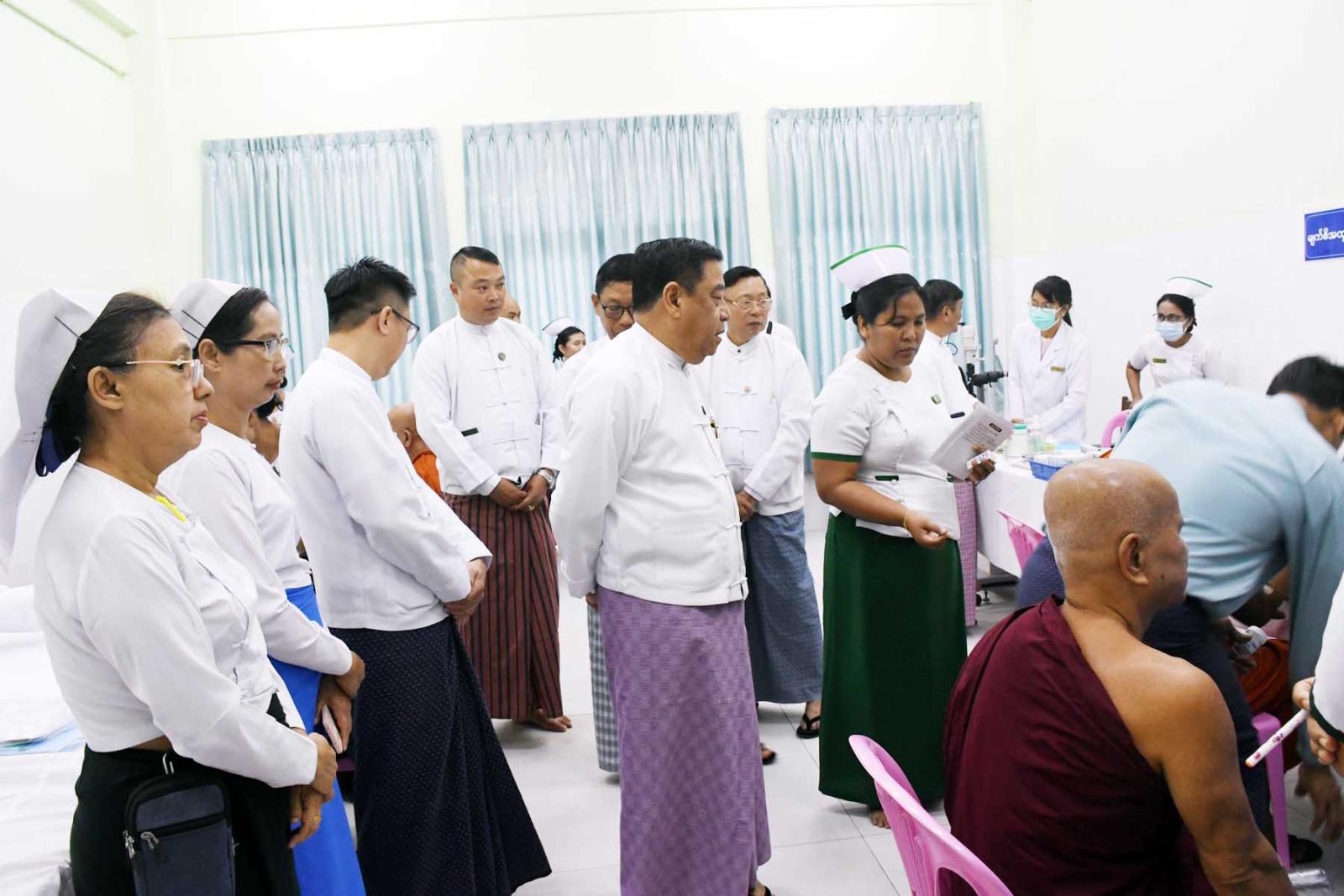 တနင်္သာရီတိုင်းဒေသကြီးဝန်ကြီးချုပ် ထားဝယ်ပြည်သူ့ဆေးရုံကြီး၌ ထေရ်ကြီးဝါကြီးဆရာတော်ကြီးများ၊ သံဃာတော်များနှင့်သီလရှင်များအား ကျန်းမာရေးစစ်ဆေးနေမှု ကြည့်ရှုအားပေး