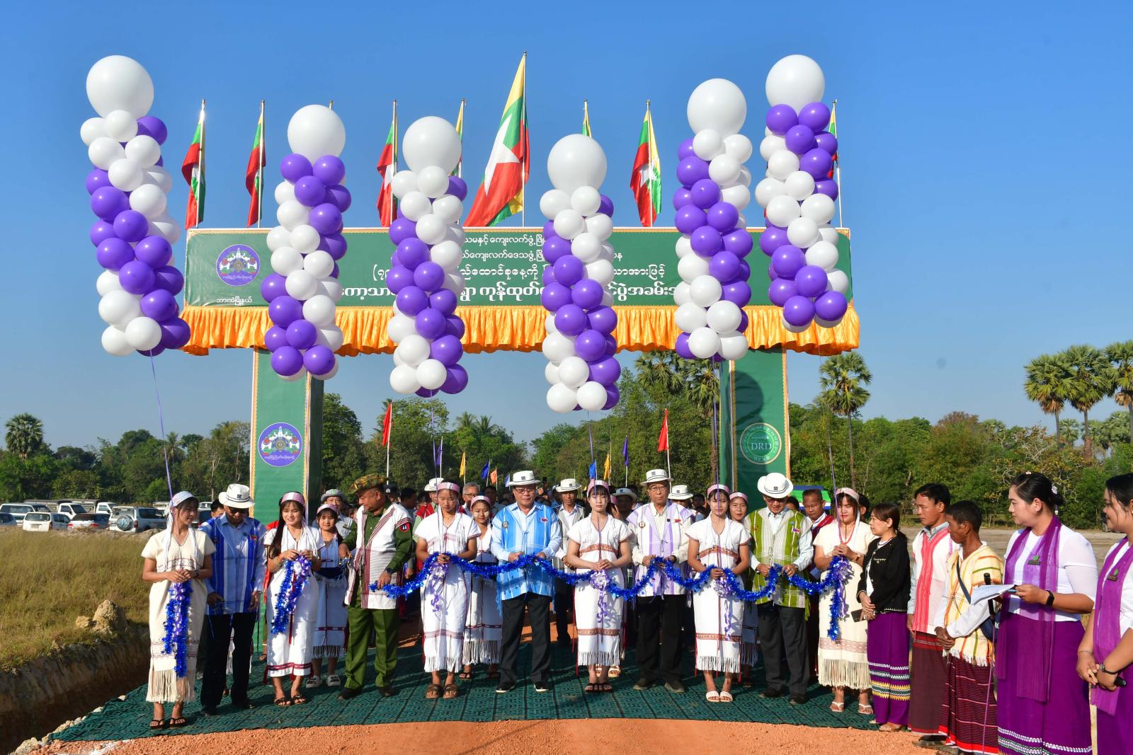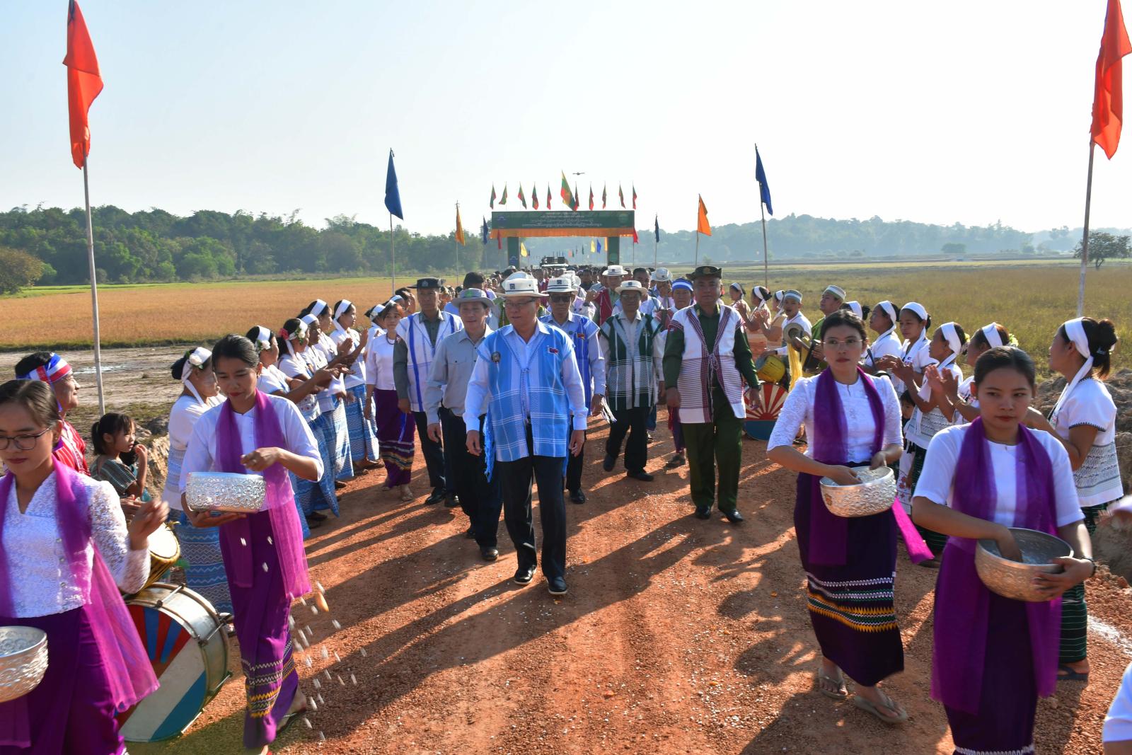 ဦးစွာ ပြည်နယ်ဝန်ကြီးချုပ်ဦးစောမြင့်ဦး၊ ပြည်နယ်တရားလွှတ်တော်တရားသူကြီးချုပ်ဦးညွန့်လင်း၊ ပြည်နယ် အစိုးရအဖွဲ့ဝင်များက စိုက်ဧကပေါင်း ၂၈၀ ကျော်ကိုအကျိုးပြုနိုင်မည့် Box Culvert (၂)စင်းပါဝင်သော ၁၂ ပေအကျယ် ကုန်ထုတ်လမ်းသစ် ၁ မိုင် ၄ ဖာလုံကို ဖဲကြိုးဖြတ်ဖွင့်လှစ်ပေးကြပြီး အဆိုပါလမ်းအား ဖြတ်သန်းကြည့်ရှုစစ်ဆေးသည်။
