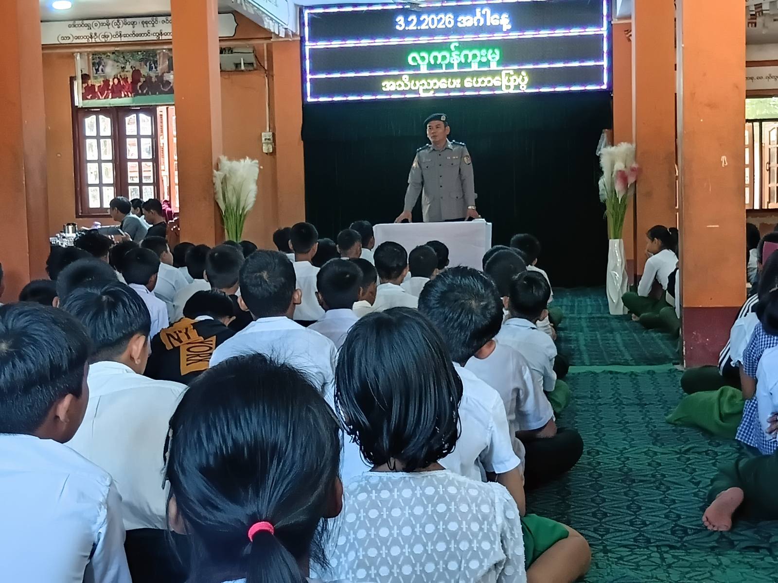 အလားတူ သစ္စာမဂ္ဂင် ဘုန်းတော်ကြီးသင်ပညာရေးကျောင်းတွင်လည်း လူငယ်ရေးရာ အသိပညာပေးဟောပြောပွဲကို ဆက်လက်ဆောင်ရွက်ခဲ့ရာ လူကုန်ကူးမှုတားဆီးနှိမ်နှင်းရေးရဲတပ်ဖွဲ့၊ တပ်ဖွဲ့စိတ် (၁) ရဲအုပ်နိုင်ထွန်း၊ ပတ်ဝန်းကျင်ထိန်းသိမ်းရေးဦးစီးဌာန၊ လက်ထောက် ညွှန်ကြားရေးမှူး၊ ဦးရန်နိုင်ထွန်း၊ အလုပ်သမားညွှန်ကြားရေးဦးစီးဌာန၊ ဦးစီးအရာရှိ၊ ဒေါ်ခိုင်ခိုင်စိုးနှင့်ပြန်ကြားရေးနှင့်ပြည်သူ့ဆက်ဆံရေးဦးစီးဌာန၊ဦးစီးအရာရှိ ဒေါ်ဆောင်းနှင်းဖြူတို့က ကျောင်းသားလူငယ်များ ဗလငါးတန်ဖွံ့ဖြိုးစေရေးဆိုင်ရာ ဆောင်ရန်၊ရှောင်ရန်အချက်များ၊ သိရှိလိုက်နာရမည့်အချက်များကို အသီးသီးဟောပြောခဲ့ကြပြီး ကျောင်းသားလူငယ်များက အသိပညာပေး နံရံကပ်စာစောင်များကို လေ့လာကြည့်ရှုခဲ့ကြကြောင်း သိရသည်။