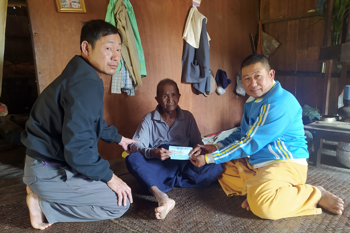 အဆိုပါ ငွေသားဖြင့်ထောက်ပံ့ပေးခြင်း ဆောင်ရွက်ရာတွင် ကာလိမြို့ စိုက်ပျိုးရေးဦးစီးဌာနမှ ဦးစီးမှူး ဦးစိုင်းငွေလေး၊ ဟိုပန်ကျေးရွာအုပ်စု အုပ်ချုပ်ရေးမှူး ဦးစိုင်းအုန်းပွင့်နှင့် အထွေထွေ အုပ်ချုပ်ရေးဦးစီးဌာနမှ အုပ်စုစာရေး ဦးဝေလင်းထွန်းတို့က ဟိုပန်ကျေးရွာအုပ်စုအတွင်းရှိ ဟိုပန် ကျေးရွာ၊ ဝမ်ဆတ်ကျေးရွာ၊ ဆိုင်းခေါင်ကျေးရွာ၊ ပန်လုံကျေးရွာ၊ နားကန်ကျေးရွာတွင် ရှိသည့် အသက်(၈၀)နှင့်(၈၅)နှစ်ကြား သက်ကြီးဘိုးဘွား (၈)ဦး တို့အား တစ်ဦးလျင် (၃)သောင်းကျပ် နှုန်းဖြင့် ကျေးရွာအရောက် လက်ဝယ်အရောက် သွားရောက်ထောက်ပံ့ပေးခဲ့ကြရာ လာရောက် ထောက်ပံ့ပေးခဲ့ကြသည့် တာဝန်ရှိသူများအား သက်ကြီးရွယ်အိုဘိုးဘွားများက ဆုတောင်းမင်္ဂလာ ပေးခဲ့ကြောင်းသိရသည်။