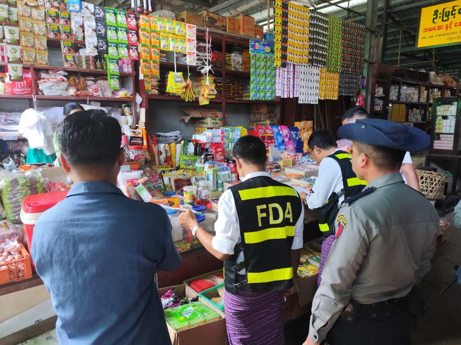 မွန်ပြည်နယ် မော်လမြိုင်ခရိုင် သံဖြူဇရပ်မြို့နယ် အမှတ် (၁) မြို့မဈေးအတွင်းရှိ စားသောက်ကုန်ဆိုင်များတွင် ရောင်းချနေသော ကုန်ပစ္စည်းများအနက် အစားအသောက်နှင့် ဆေးဝါးကွပ်ကဲရေးဦးစီးဌာန (FDA) မှ သုံးစွဲရန်မသင့်ကြောင်း ထုတ်ပြန်ထားသည့် တားမြစ်ဓာတုပစ္စည်းပါဝင်သော စားသောက်ကုန် ပစ္စည်းများအား အများပြည်သူသိရှိစေရန် အသိပညာပေးခြင်းနှင့် ဈေးကွက်အတွင်း ရောင်းချမှုမရှိစေရေး စစ်ဆေးခြင်းကို ခရိုင်အစားအသောက်နှင့်ဆေးဝါးကွပ်ကဲရေးဦးစီးဌာန၊ မြို့နယ်ပြည်သူ့ကျန်းမာရေးဦးစီးဌာန၊ မြို့နယ်အထွေထွေအုပ်ချုပ်ရေးဦးစီးဌာန၊ မြို့နယ်စည်ပင် သာယာရေးအဖွဲ့၊ မြန်မာနိုင်ငံရဲတပ်ဖွဲ့တို့ပူးပေါင်း၍ ယနေ့နံနက်ပိုင်းက ကွင်းဆင်းဆောင်ရွက်ခဲ့ကြသည်။